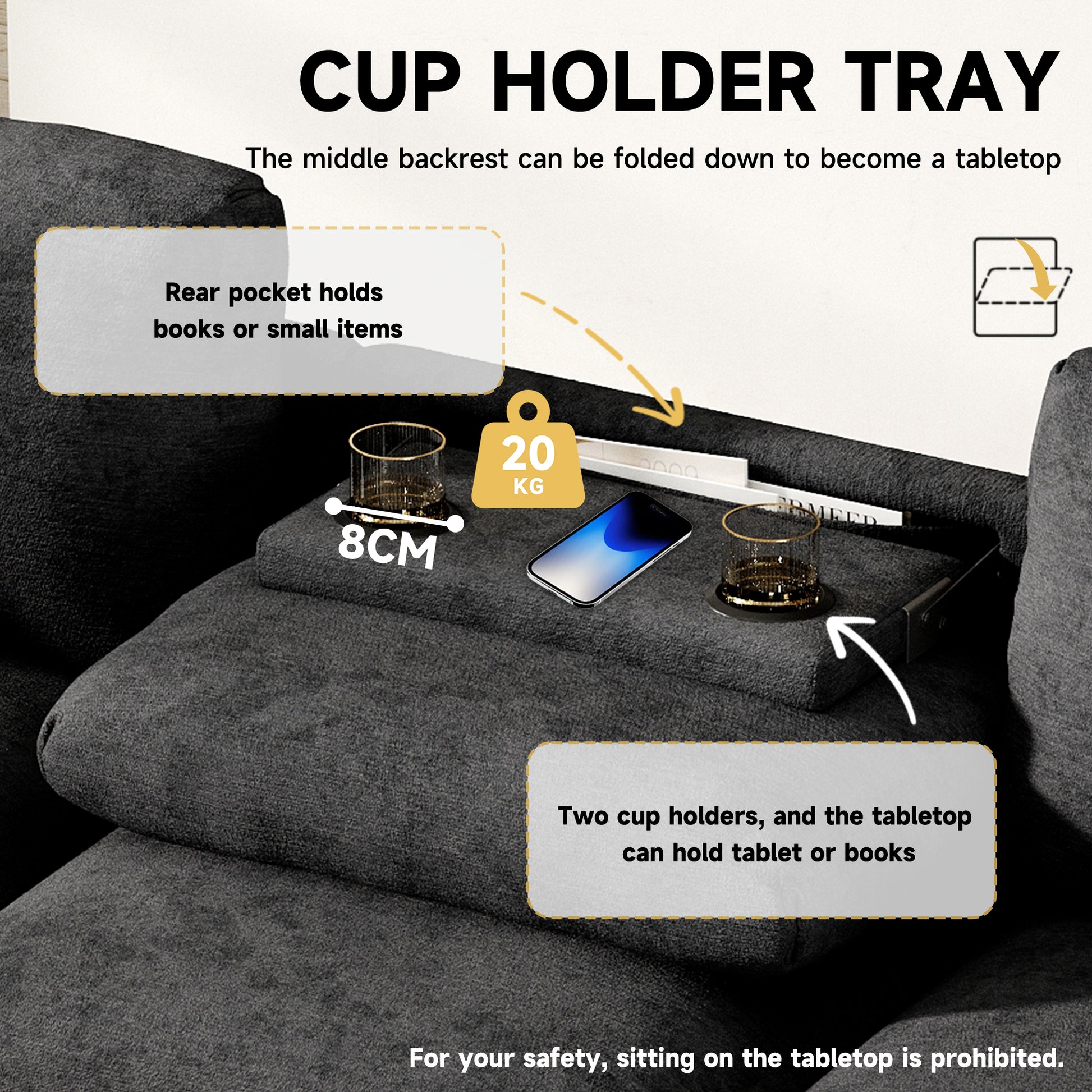 Modern Three-Seater Sofa, Multifunctional Folding Table USB Storage, Chenille Fabric