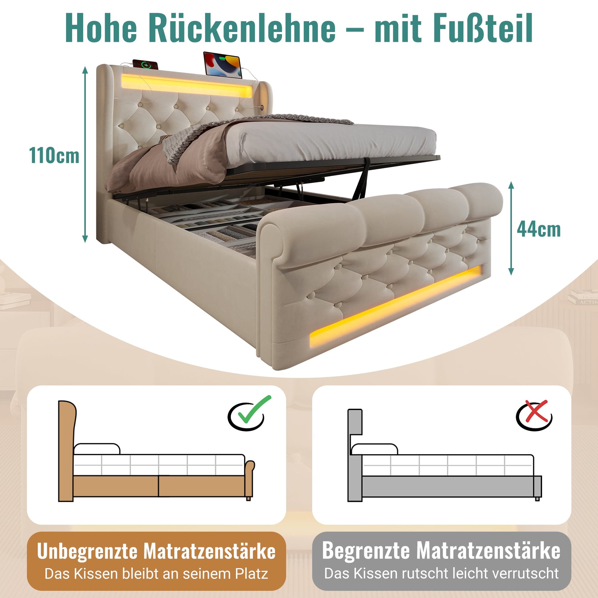 - Removable Velvet Headboard Cover: Keeps pillows secure and allows easy cleaning.