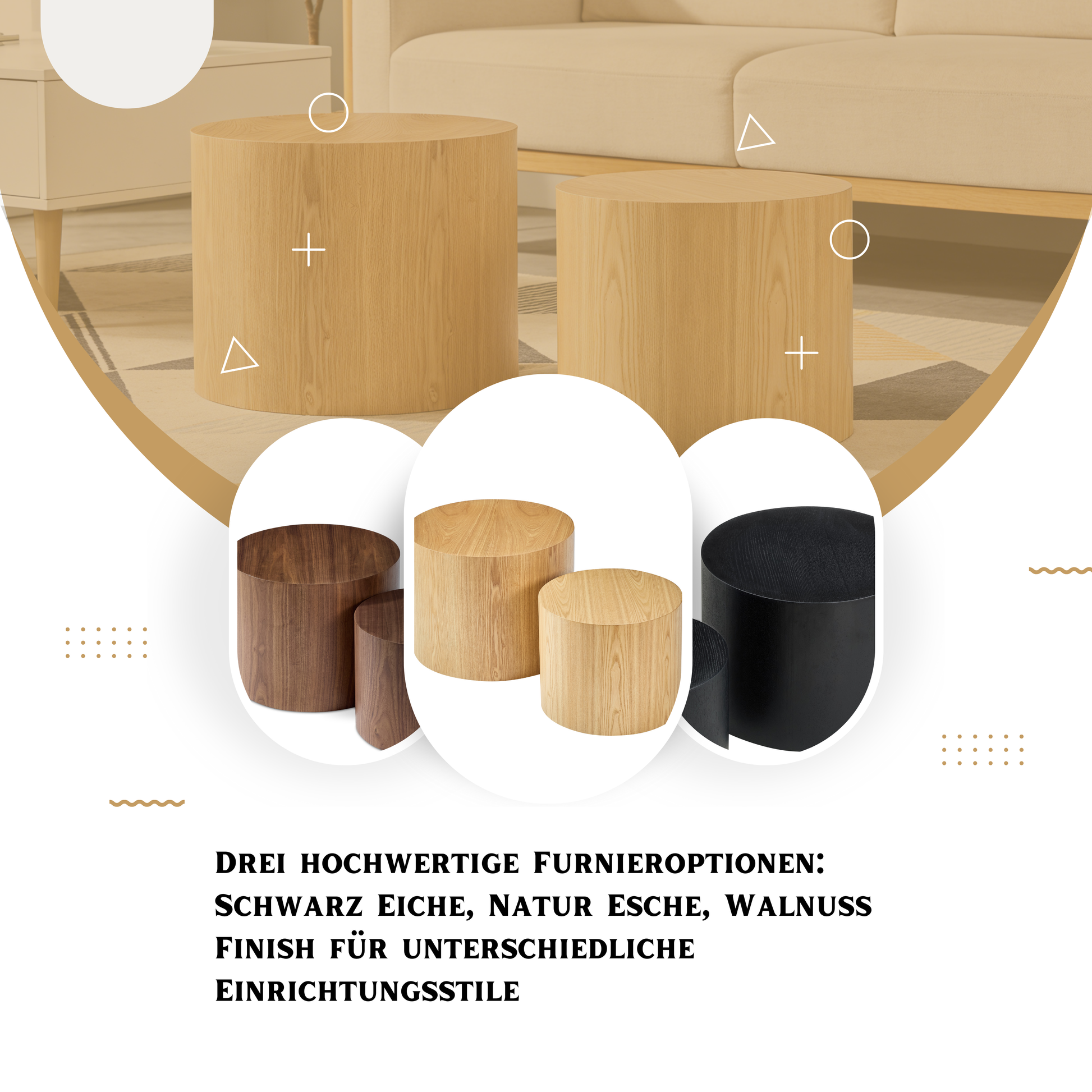 Modular Nesting Coffee Table Set of 2 Solid Wood Cylinder Design - Natural, Black & Walnut