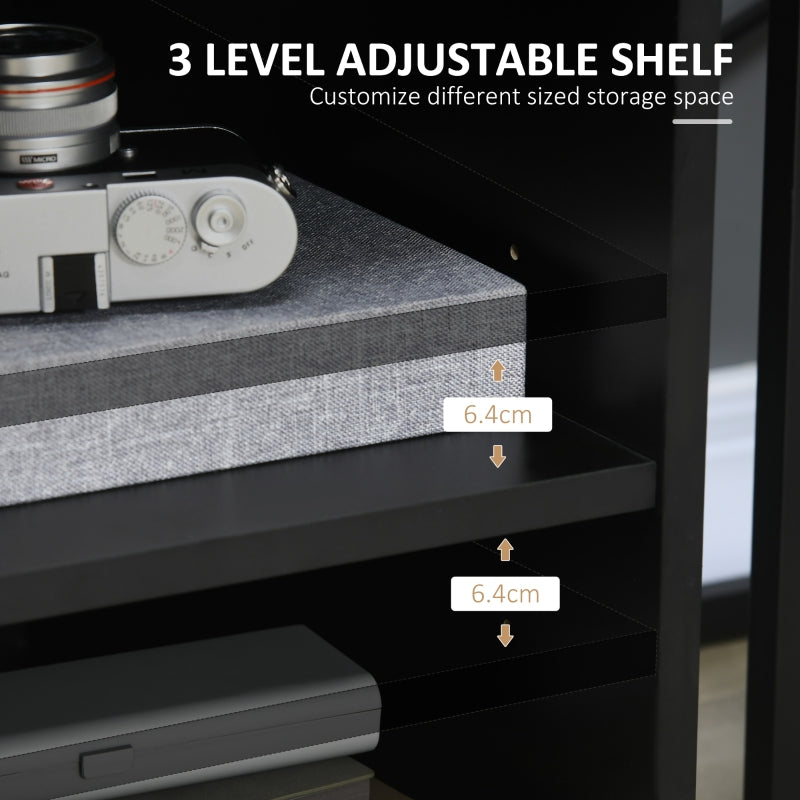 Spacious: Features a large flat tabletop, a wide open compartment, two open shelves, and a bottom cupboard with a 3-level adjustable shelf. This keeps your printer, paper, and other necessary office essentials together in one place.