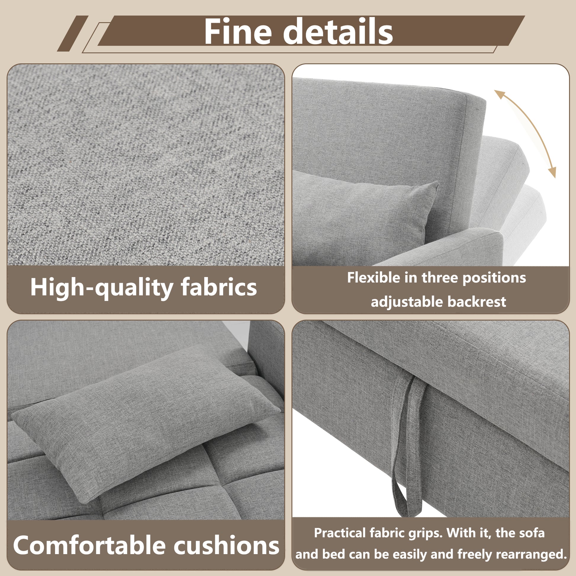 Multifunctional Folding Sofa Bed, Adjustable Backrest 180 x 127 cm Daybed, Dark Grey Linen