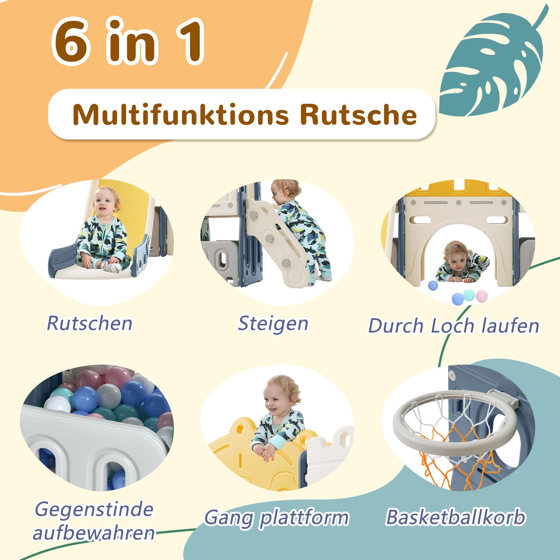 Let your child embark on a castle-themed adventure with the My Little Castle 6-in-1 Slide Climbing Toy in vibrant blue. This multifunctional indoor playground combines climbing, sliding, crawling, basketball, drilling games, and storage, all in a safe and engaging design. Perfect for children aged 3–6 years, it encourages physical activity, coordination, and imaginative play while keeping safety a top priority.