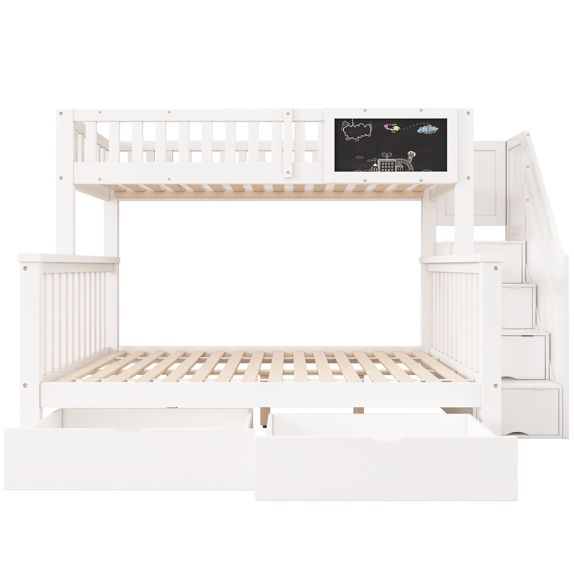 N634P250627W Bunk Bed with Chalkboard, Safety Rail, and Storage Drawers