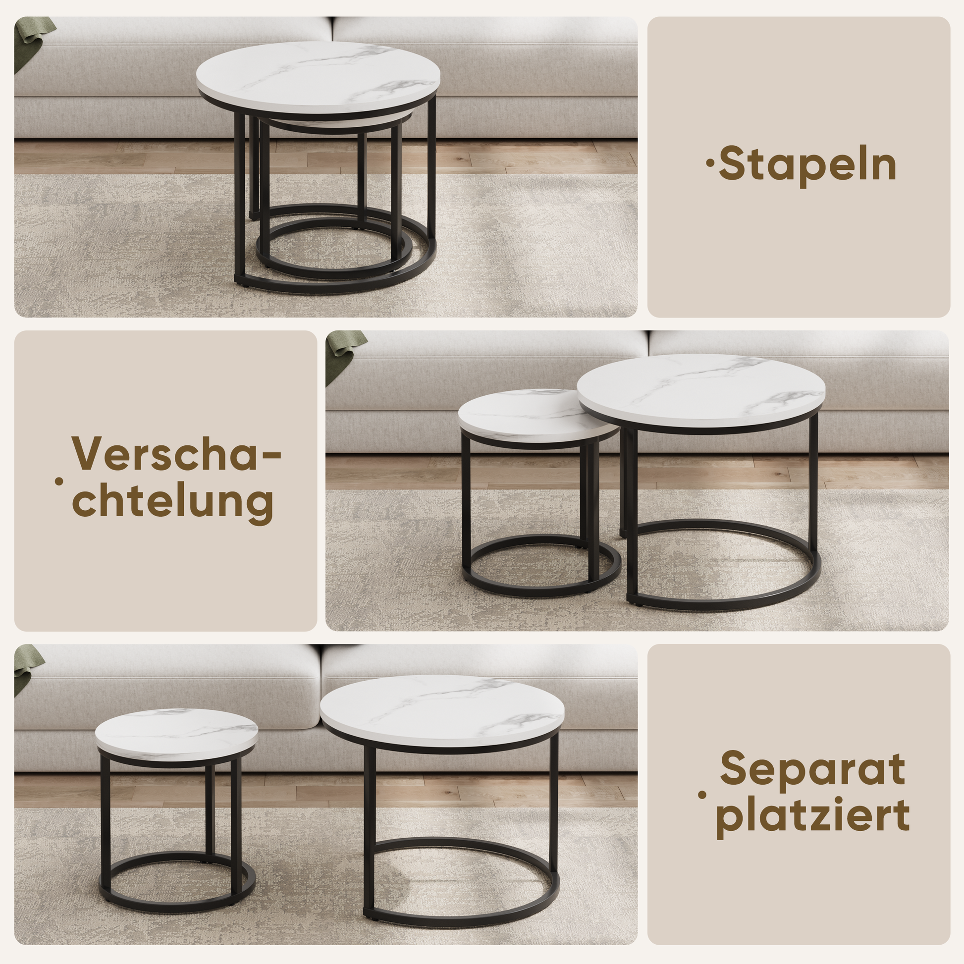 Multifunctional use: The design of the round nested coffee table is simple and beautiful. This space-saving nested table set includes a large table and a small table, which can be used in different sizes according to your needs. Suitable for use as a coffee table, side table, cocktail table, reading table, or snack table under the living room sofa.