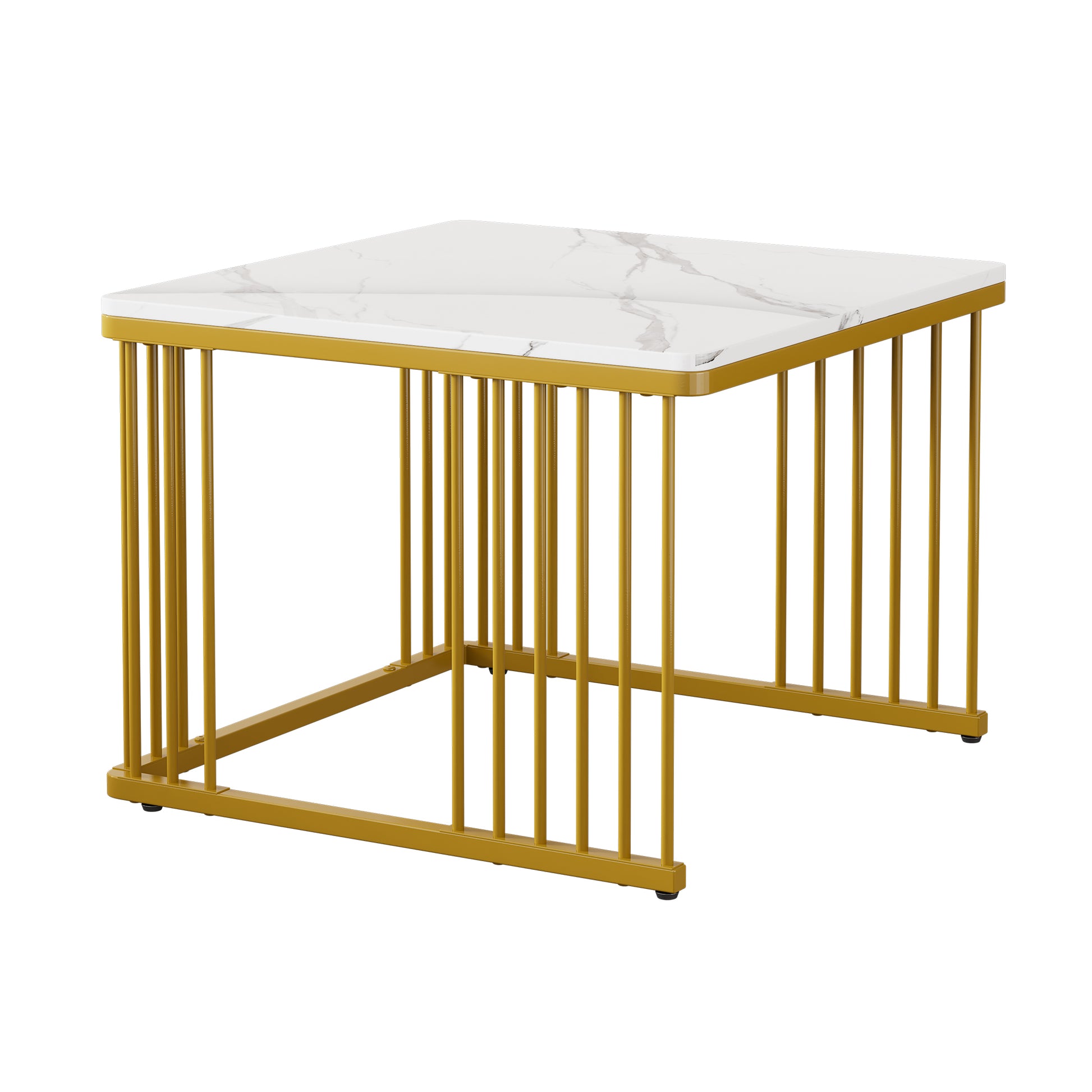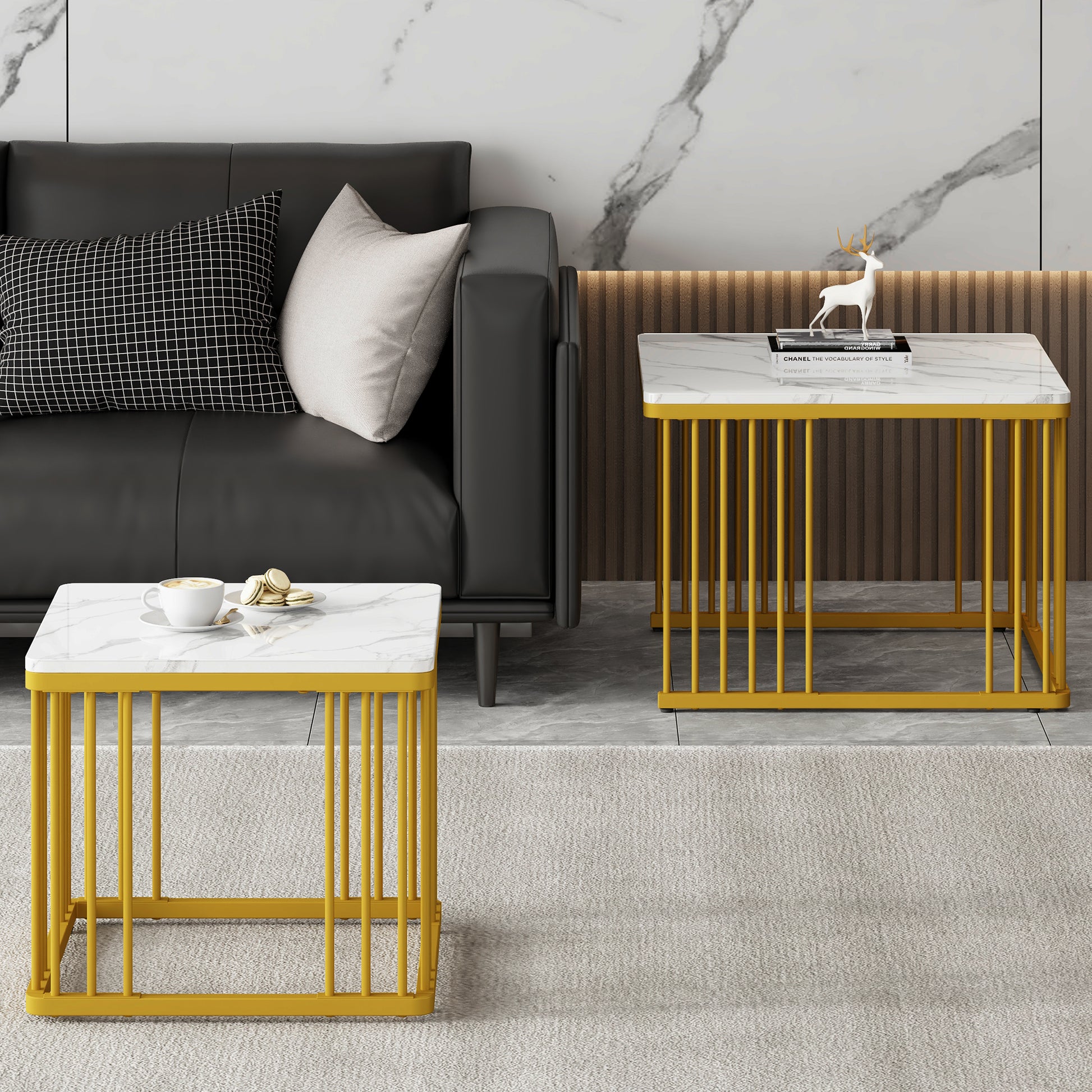 Nesting Coffee Tables Set of 2 Square Marble-Effect High-Gloss - Gold Legs