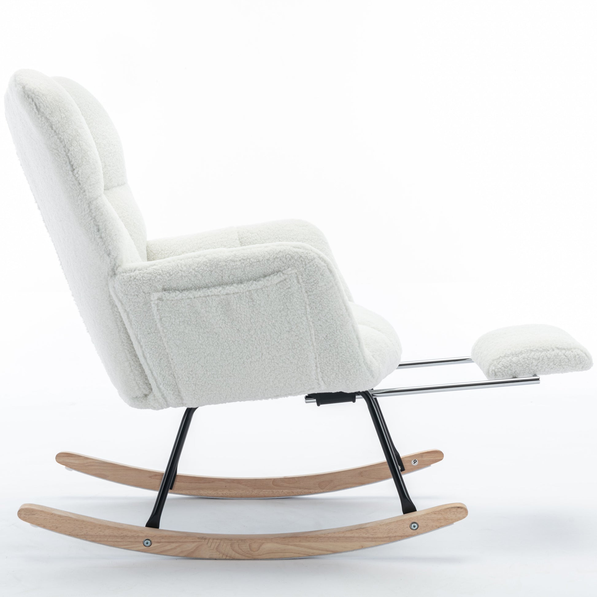New Modern Teddy Fabric Tufted Upholstered Rocking Chair with Pull-Out Footrest, White