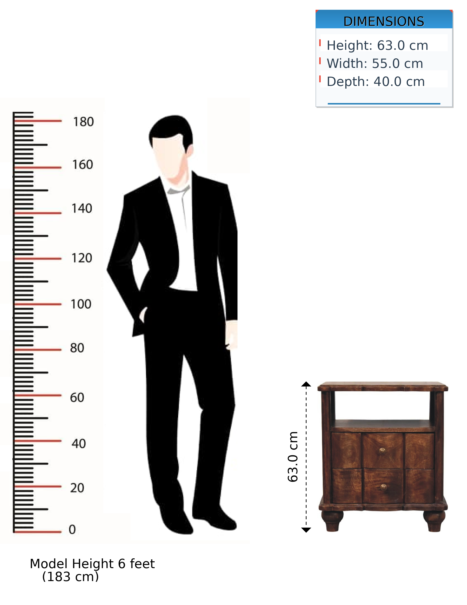 Nightstand 2-Drawer with Open Shelf, Solid Wood Brown