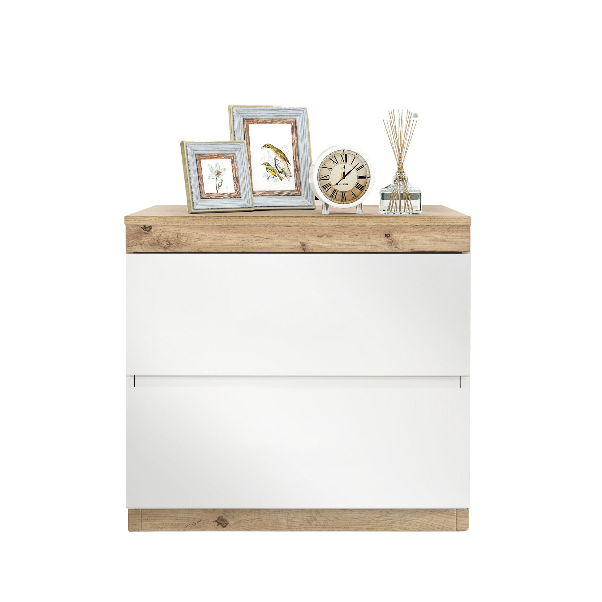 Nightstand 2 Drawers Storage - White/Oak E1 Chipboard