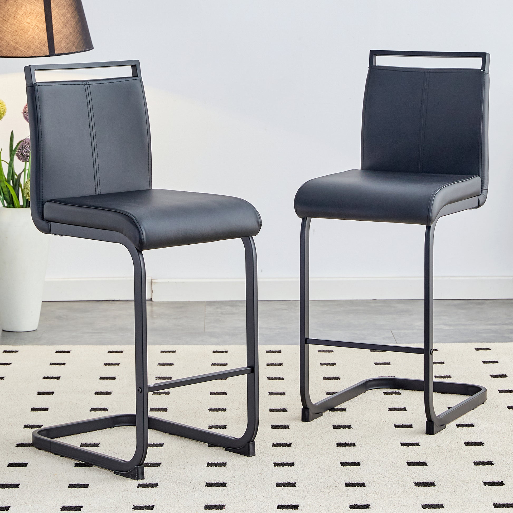 Nordic-Style Bar Stools, Set of 2, 96.5 cm Height, Black Faux Leather