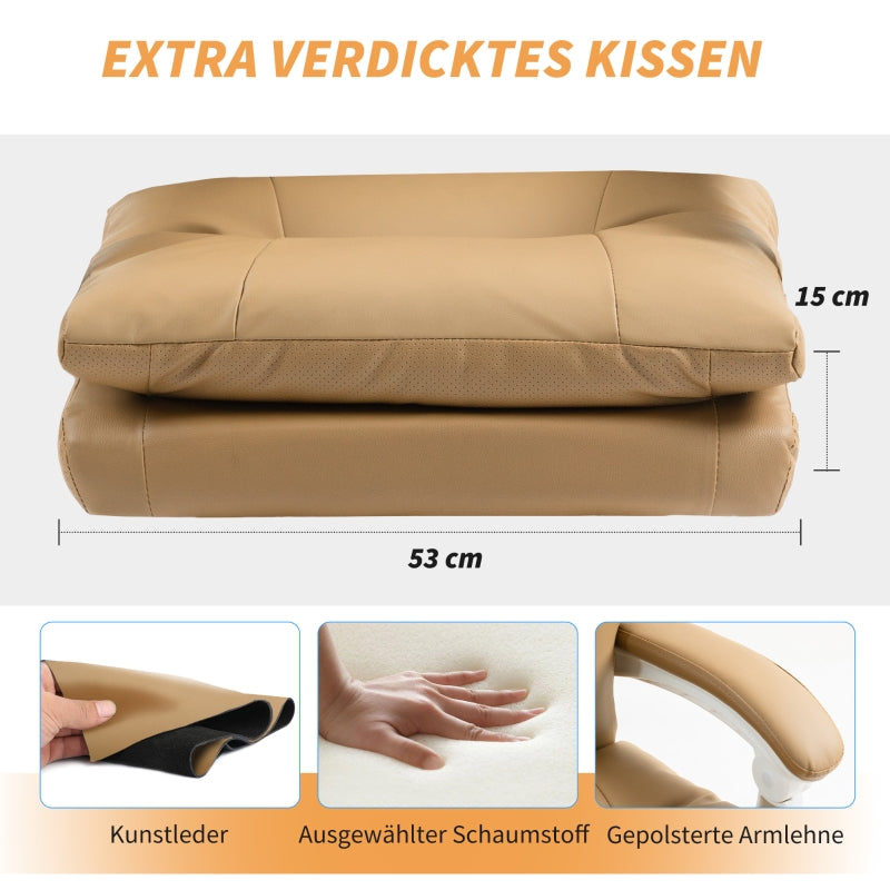 Office Chair, Ergonomic Desk with Lumbar Support, Foldable Armrest, Footrest, Light Brown