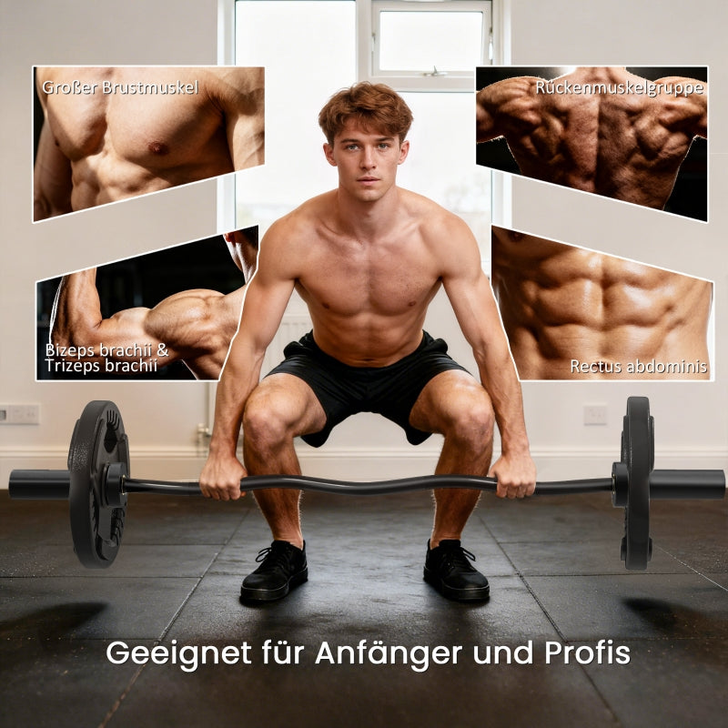 Perfect your strength training with this versatile Olympic barbell. It is ideal for key exercises like squats, deadlifts, and bench presses, enabling effective full-body workouts that activate all major muscle groups from the comfort of your own home. Overall dimensions of the curl bar are 5W x 120D x 5H cm, with a maximum user weight of 100 kg. The bar's weight is 8 kg, and assembly is not required.