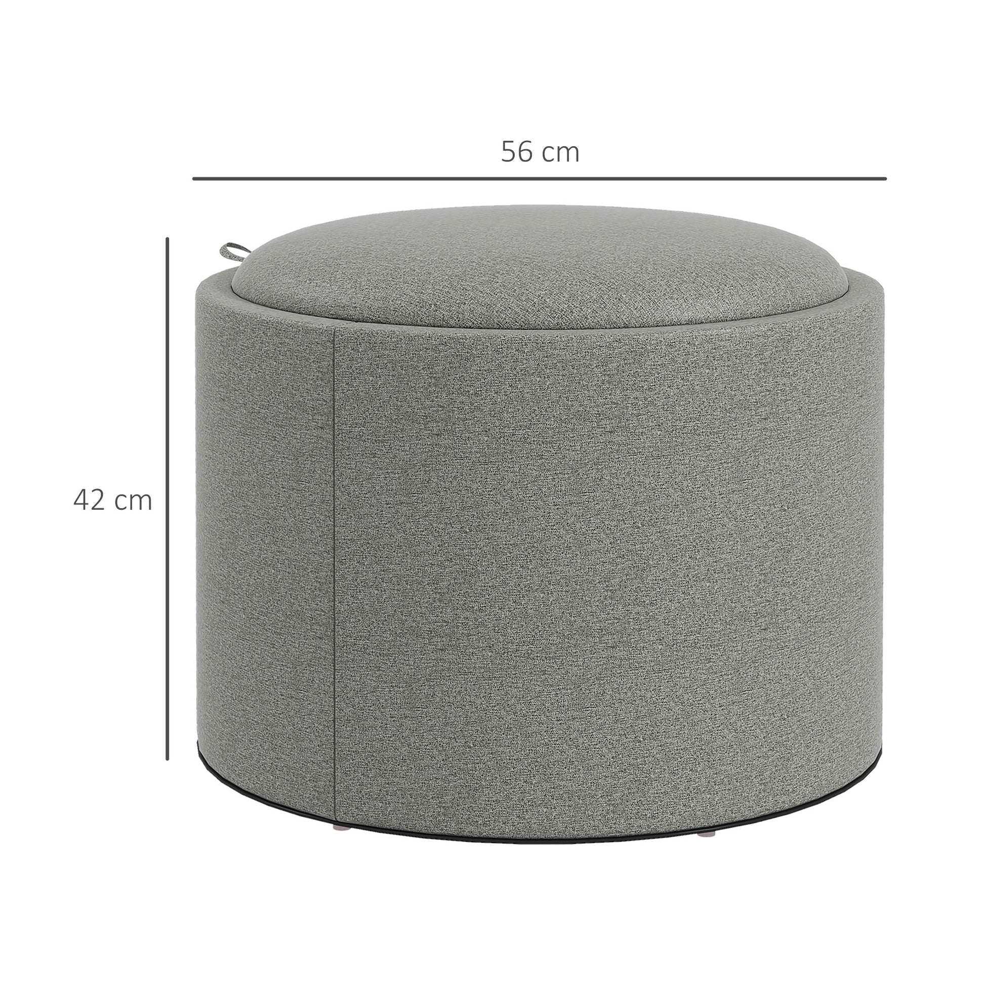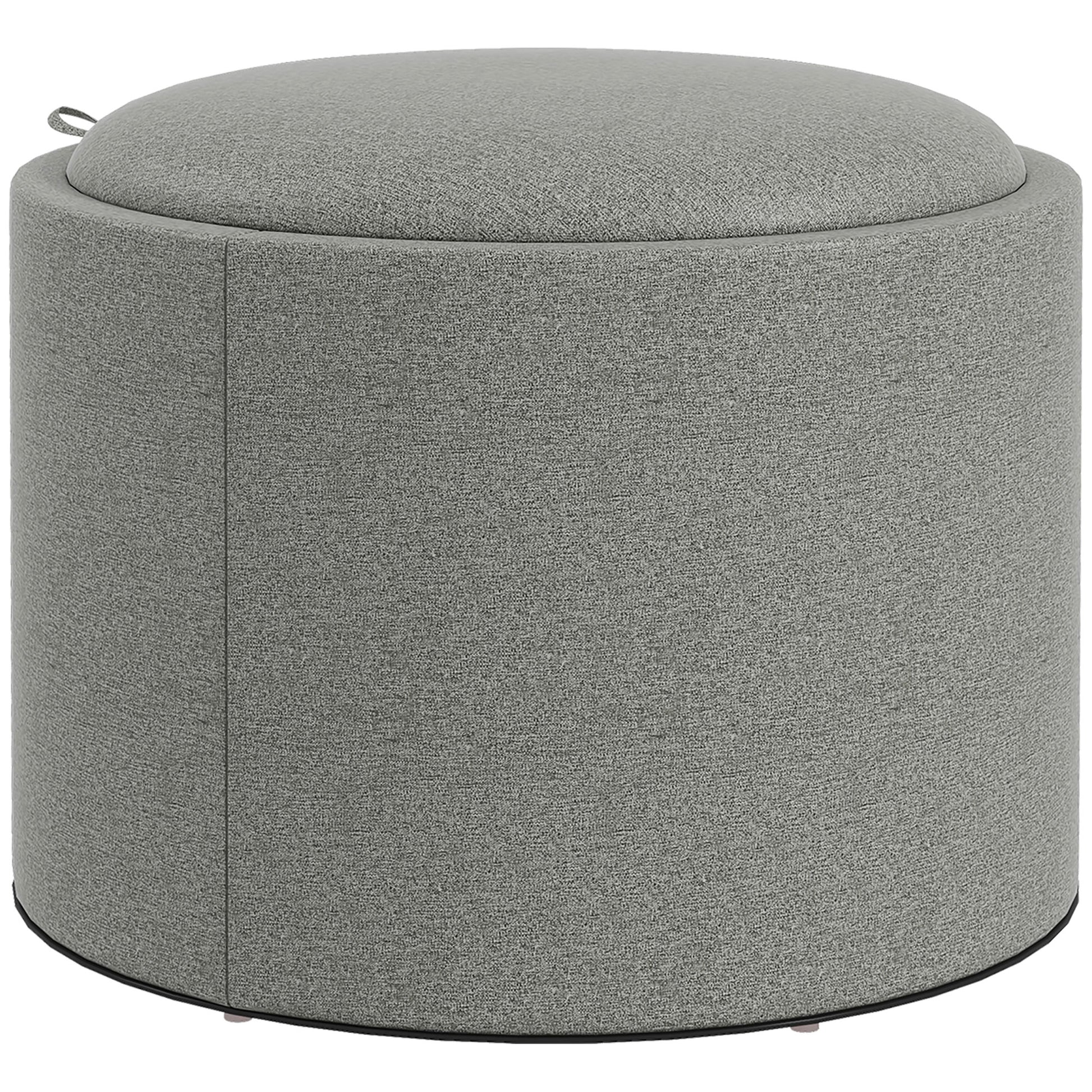 Ottoman Round Stool with Storage and Hinged Lid, grey linen look