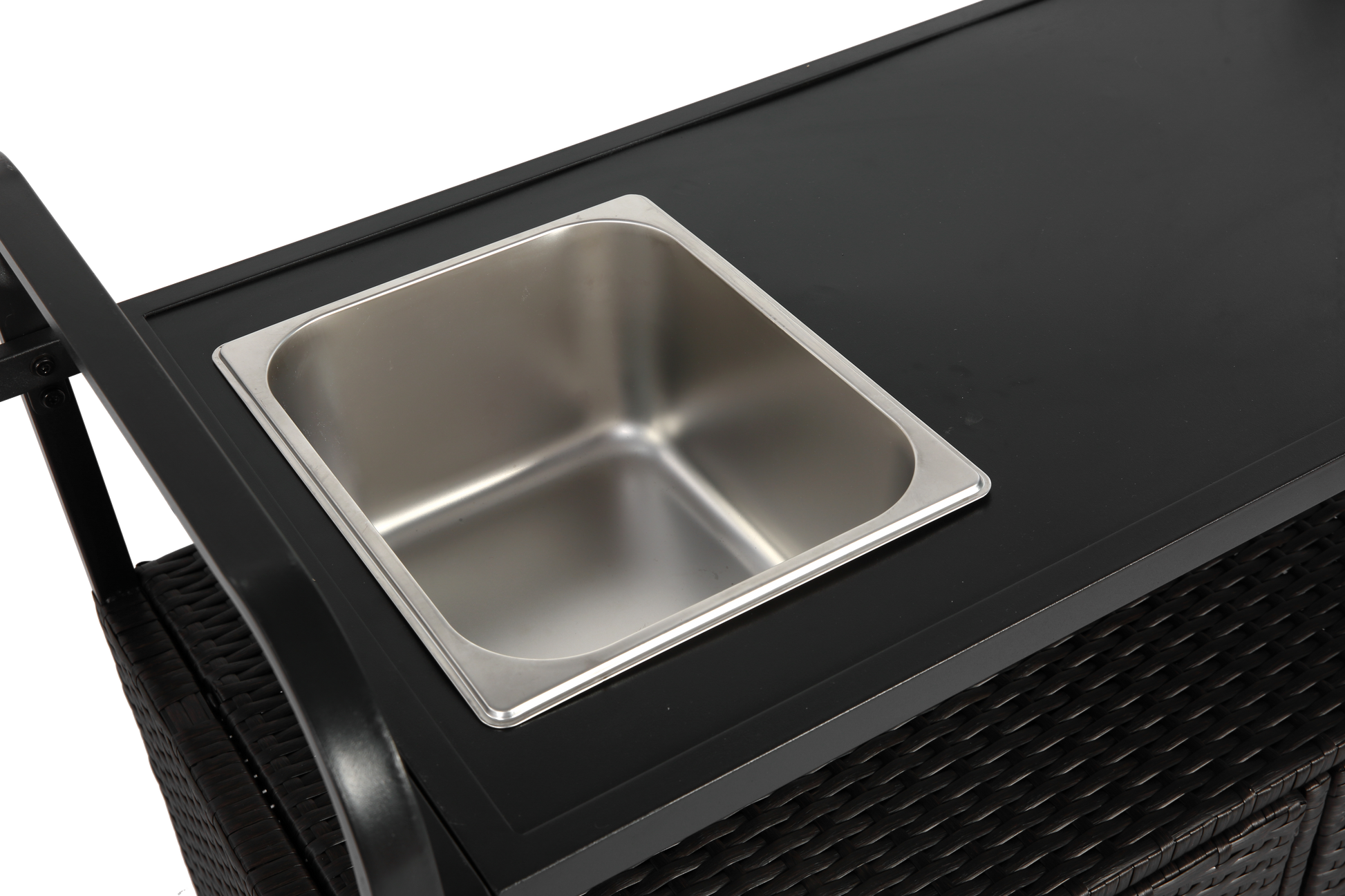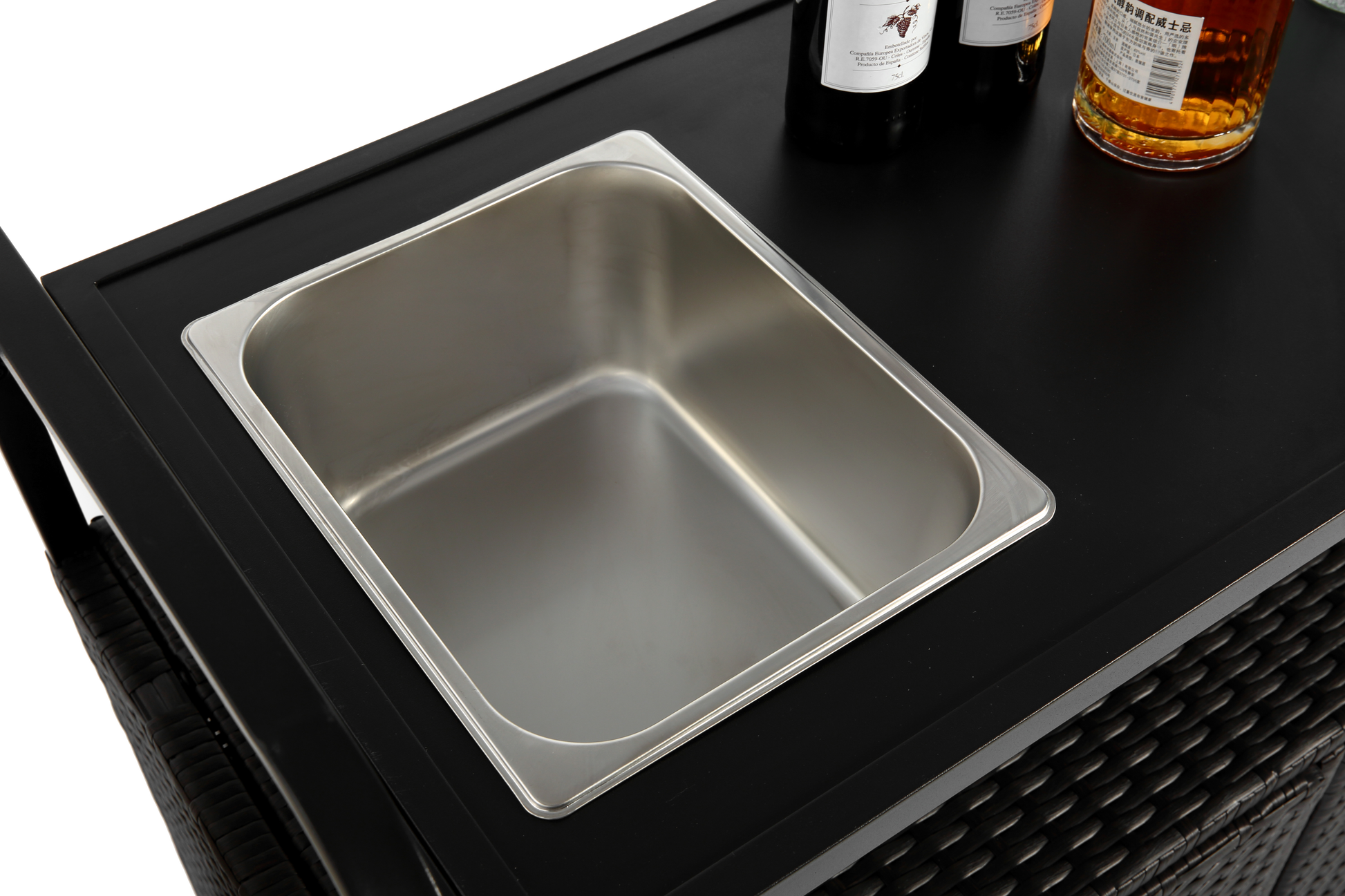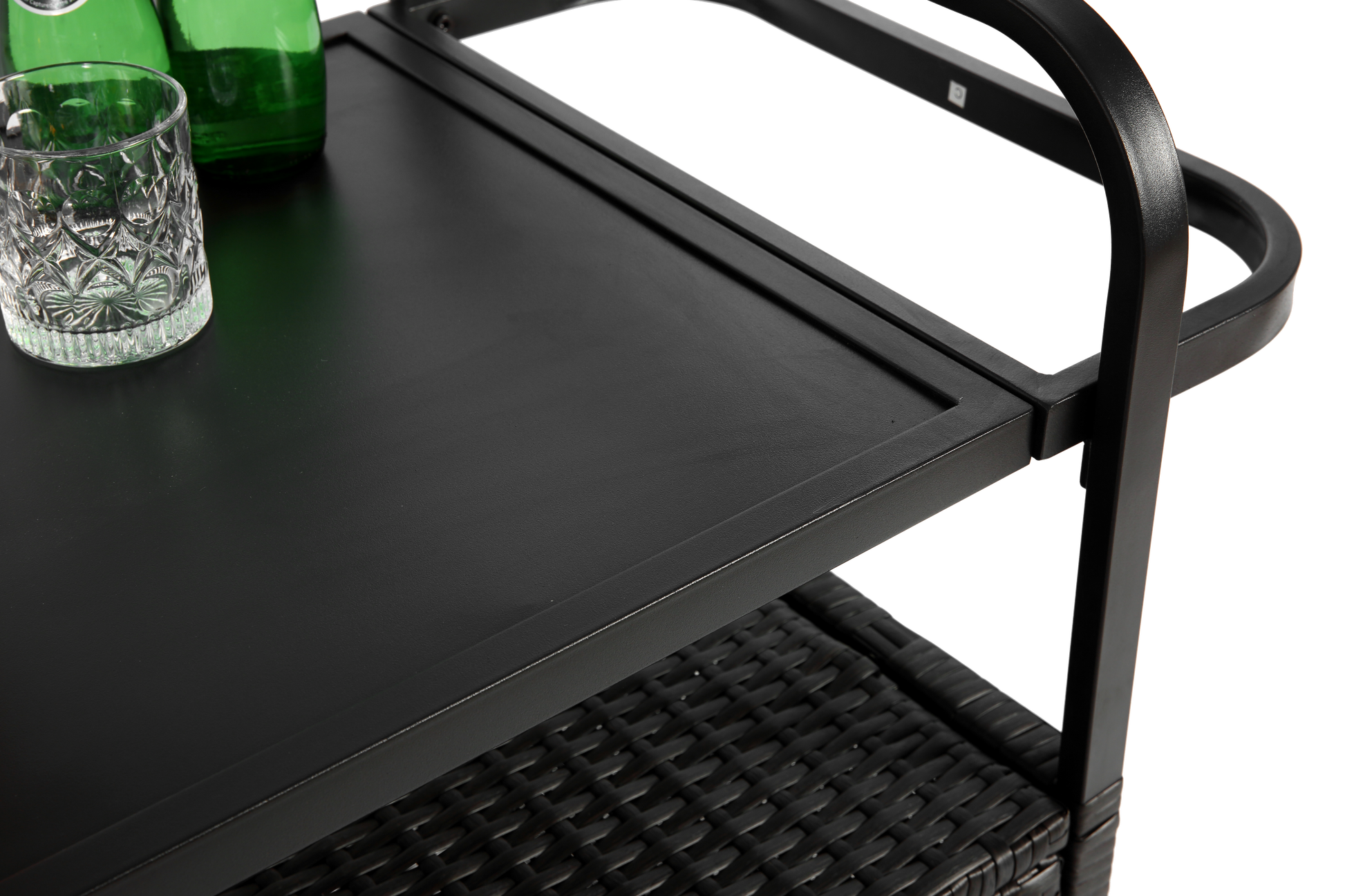Outdoor Bar Table, Wicker Bar Cart with Cabinet-Balck