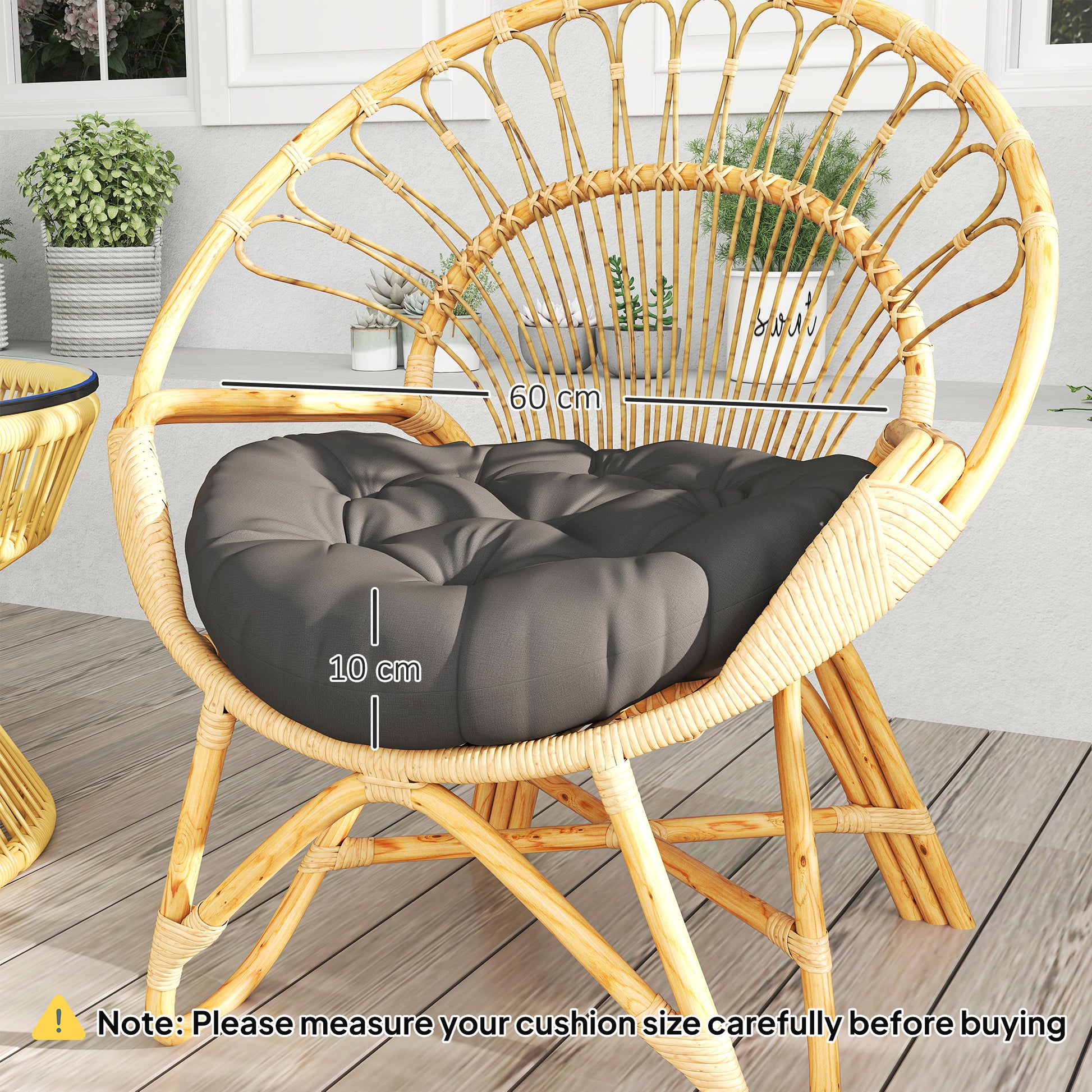 Tufted finish: The tufted finish helps the outdoor chair cushions hold their shape and inner padding together while adding a decorative touch.
