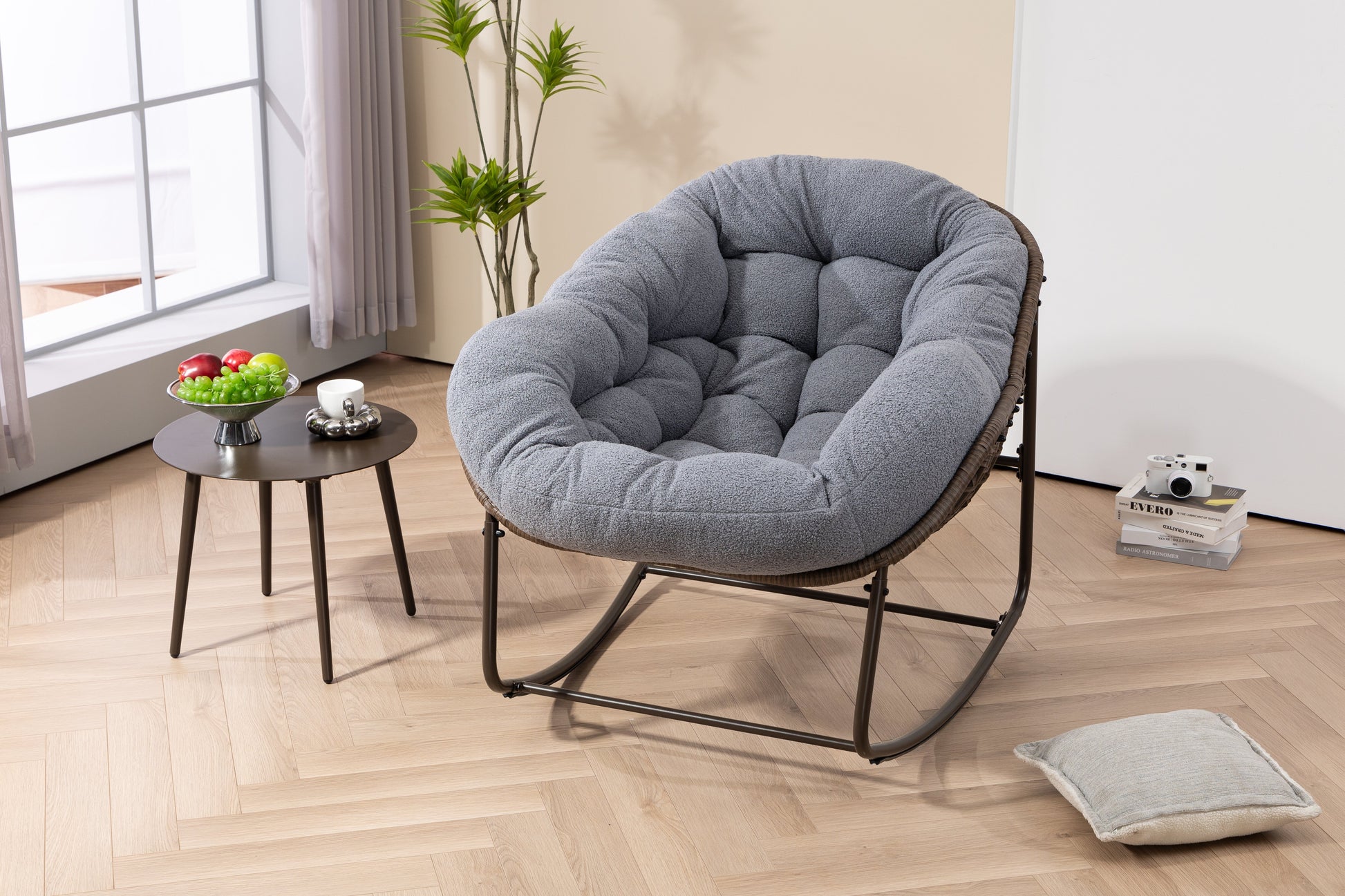 Our rattan chairs are meticulously hand-woven with high-quality synthetic rattan material, the rattan is not easy to fade and durable. Enjoy the sunbathe with our oversized rocking chair and it will bring you a different experience.