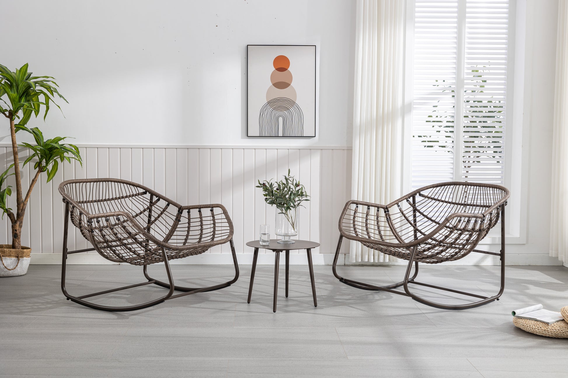 Our rattan chairs are meticulously hand-woven with high-quality synthetic rattan material, the rattan is not easy to fade and durable. Enjoy the sunbathe with our oversized rocking chair and it will bring you a different experience.