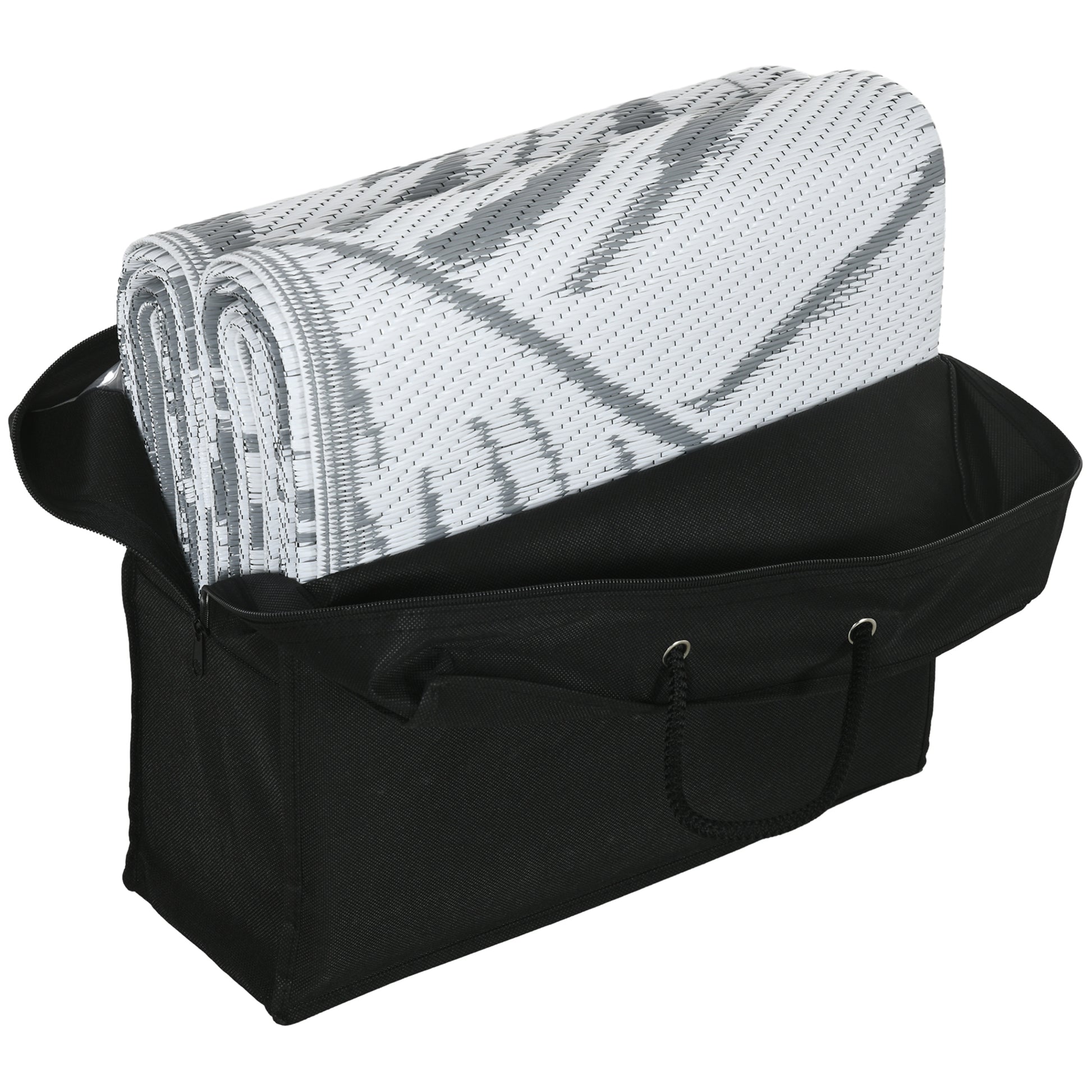 Outdoor Rug, Weatherproof Plastic, 182x274cm Double-Sided Design, Grey and White