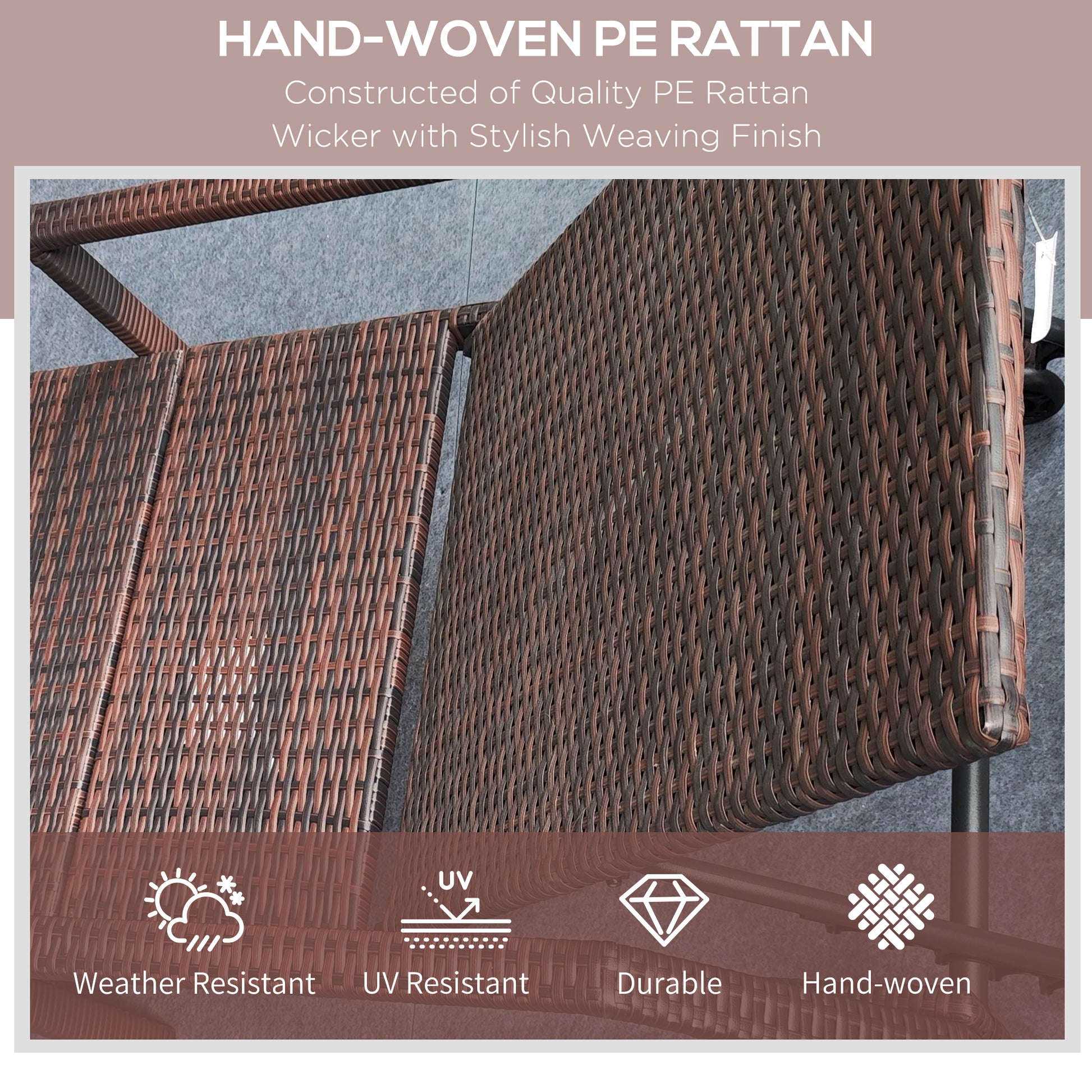 The lounger is built with a strong metal frame wrapped in durable plastic wicker, providing a stylish rattan look with double the durability. A soft padded cushion ensures you stay comfortable while you relax.