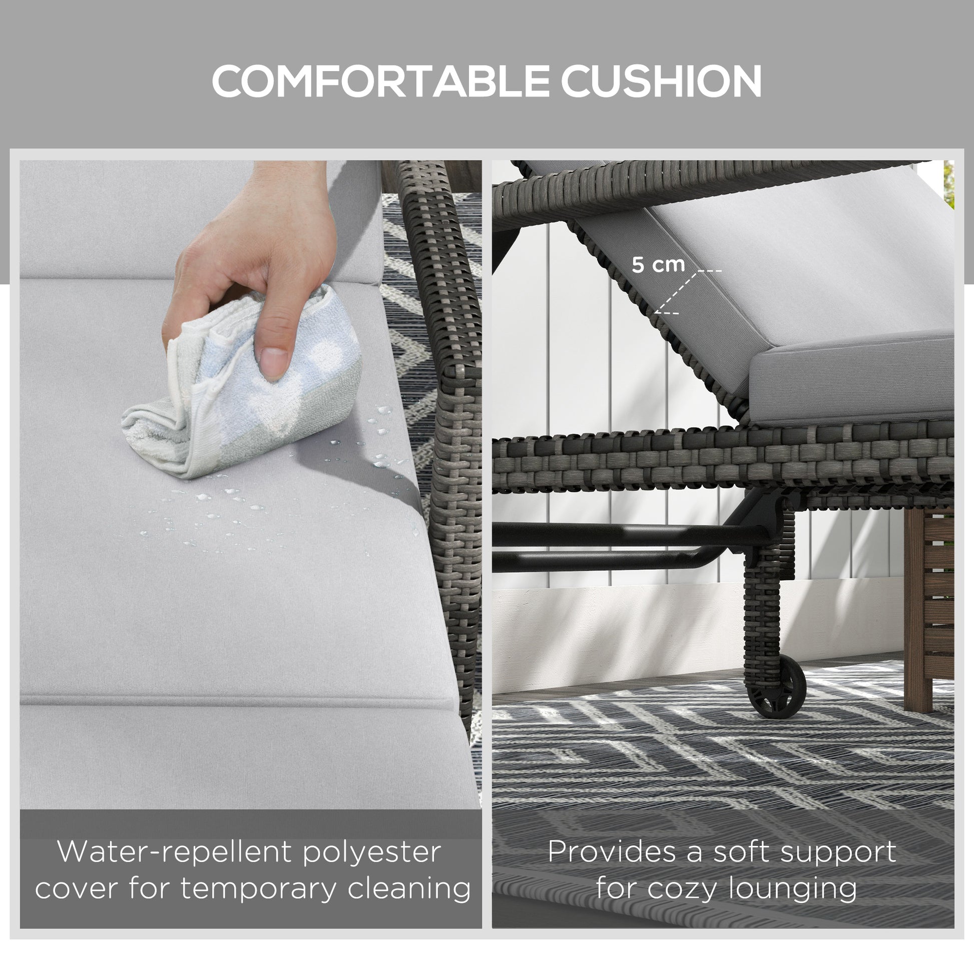 Outdoor Sun Lounger Chaise Recliner, 5-Level Adjustable Backrest, 2 Wheels, Rattan Wicker