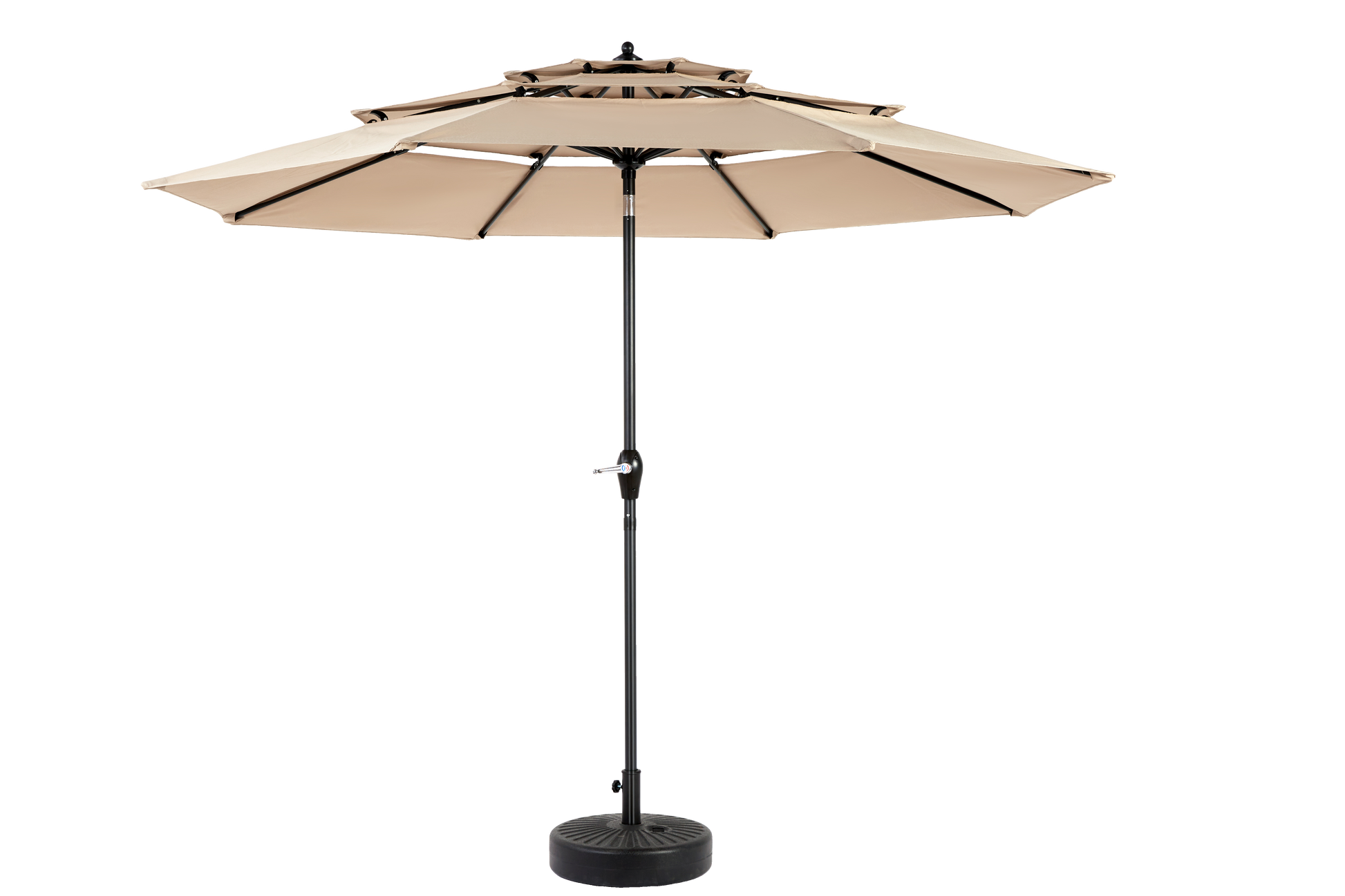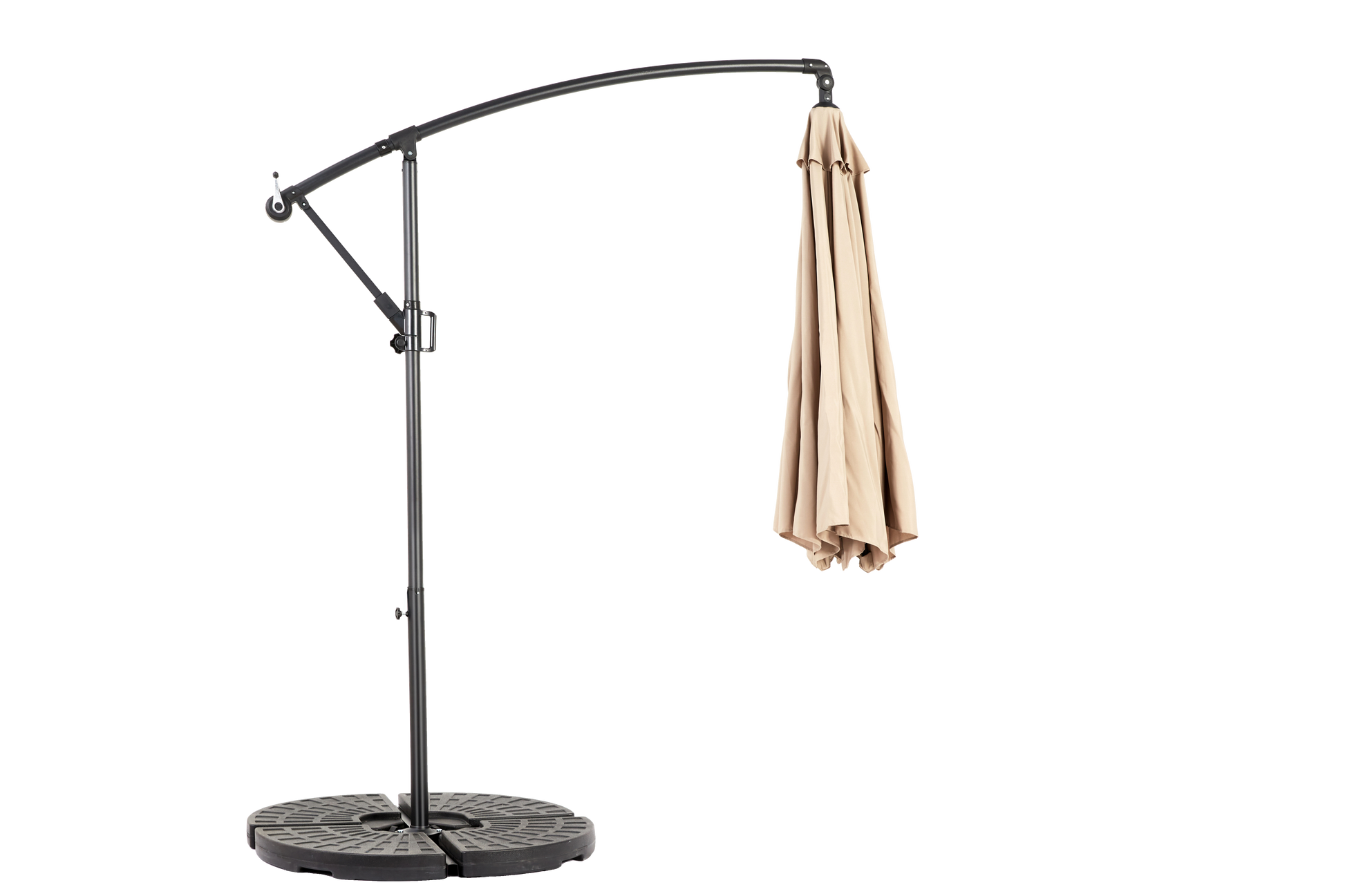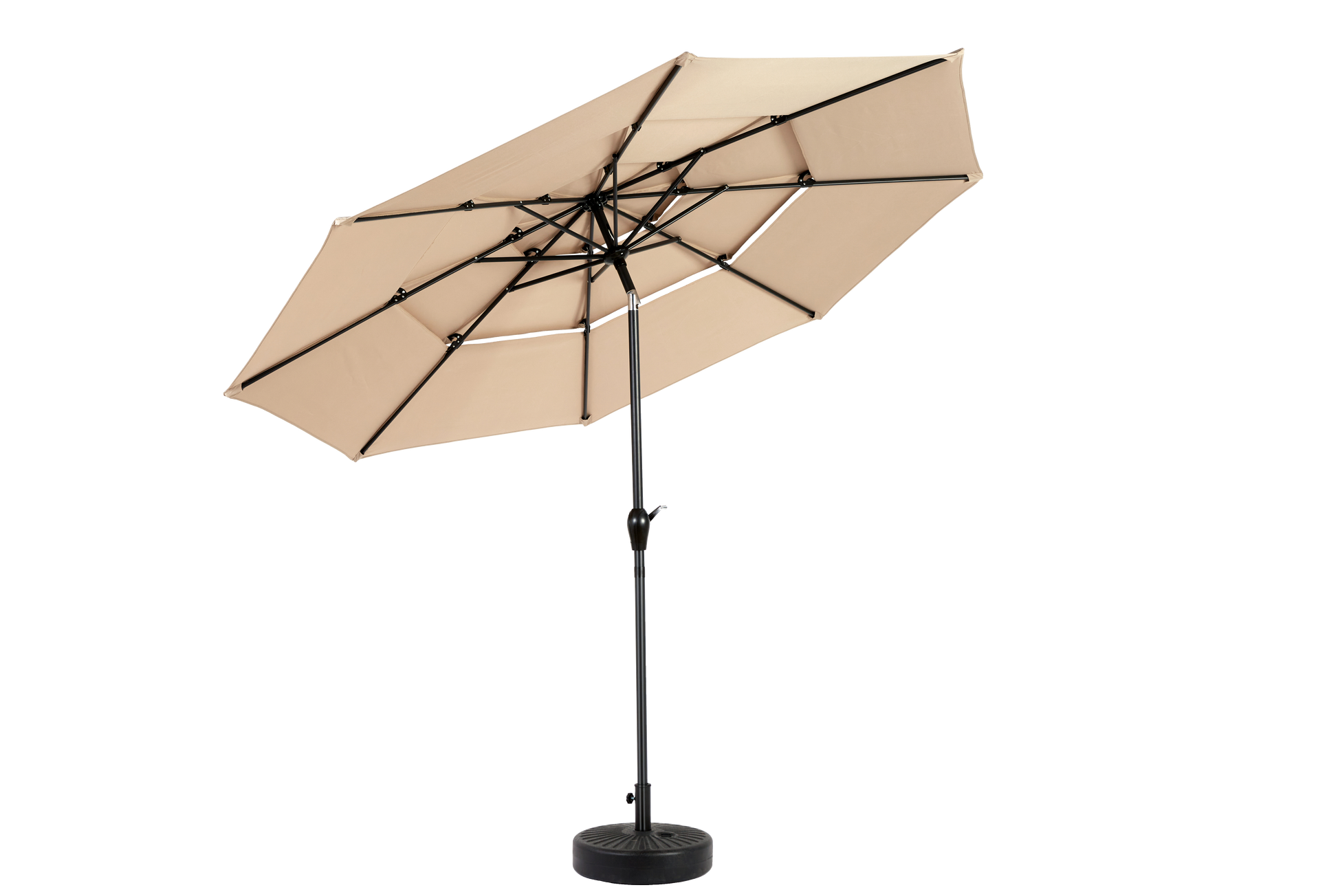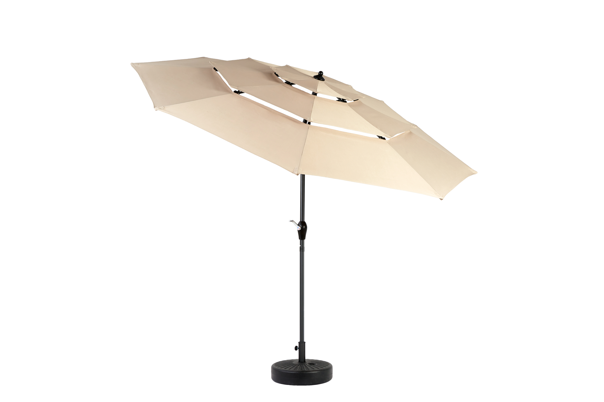 With its simple crank mechanism, this market umbrella can be opened and closed in just a few seconds by rotating the handle. This lightweight umbrella does not include a base.