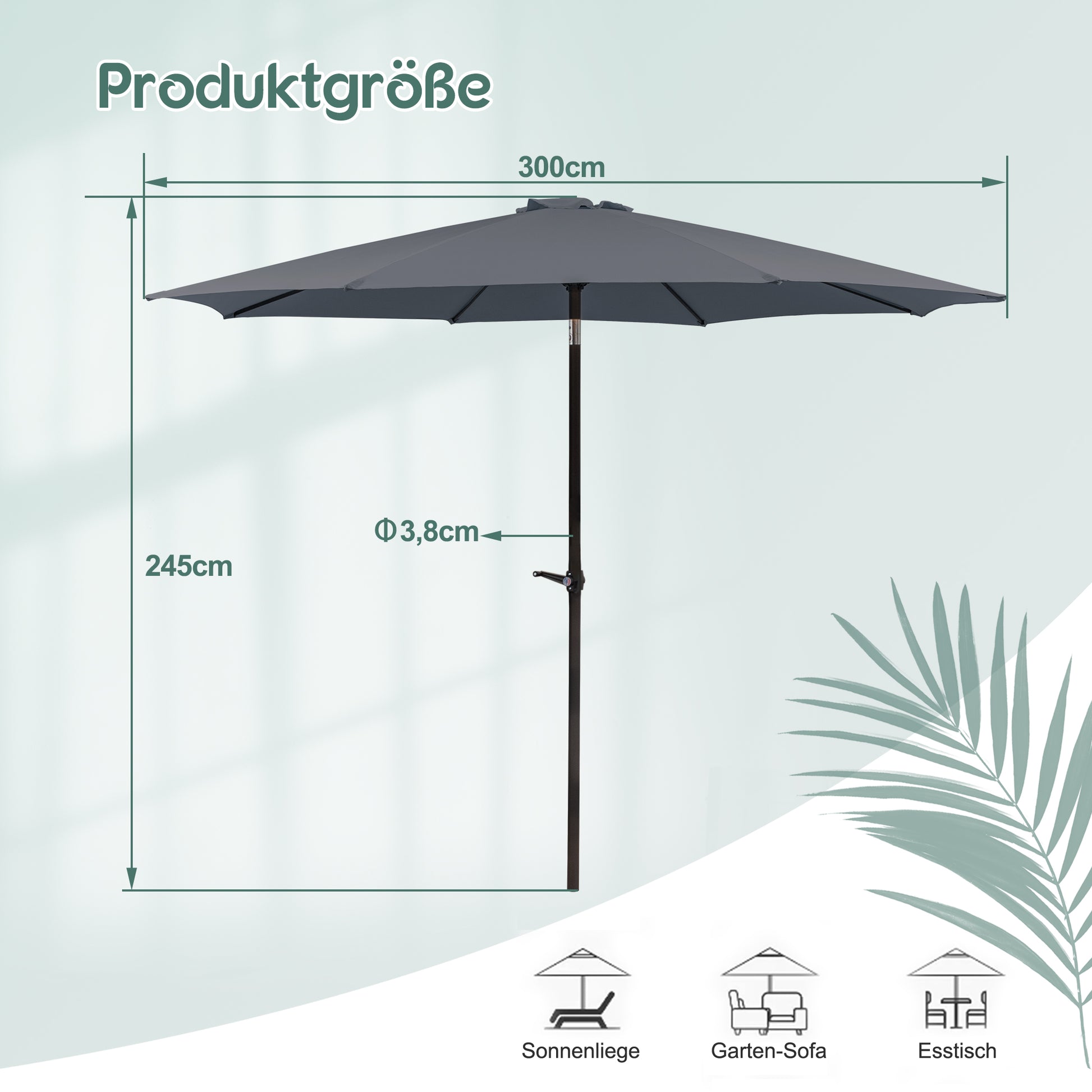 Parasol 300 cm foldable travel beach umbrella for outdoor