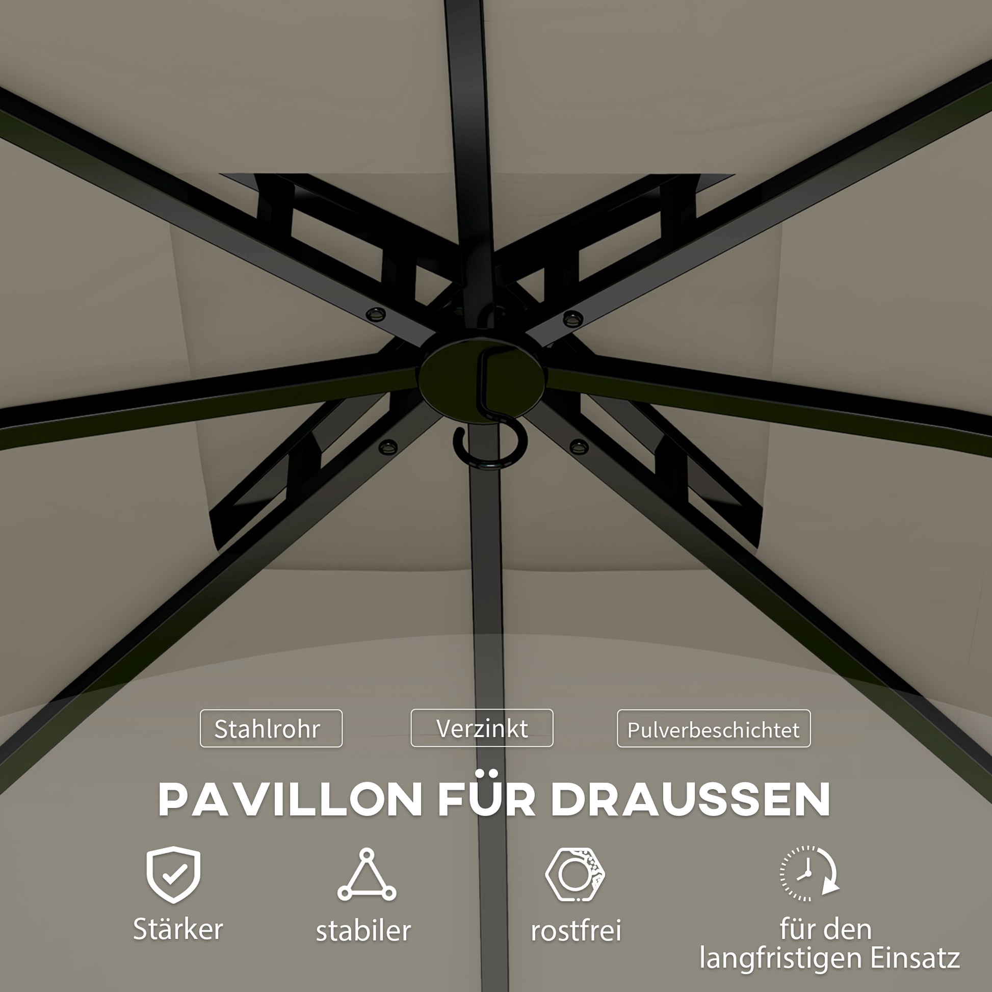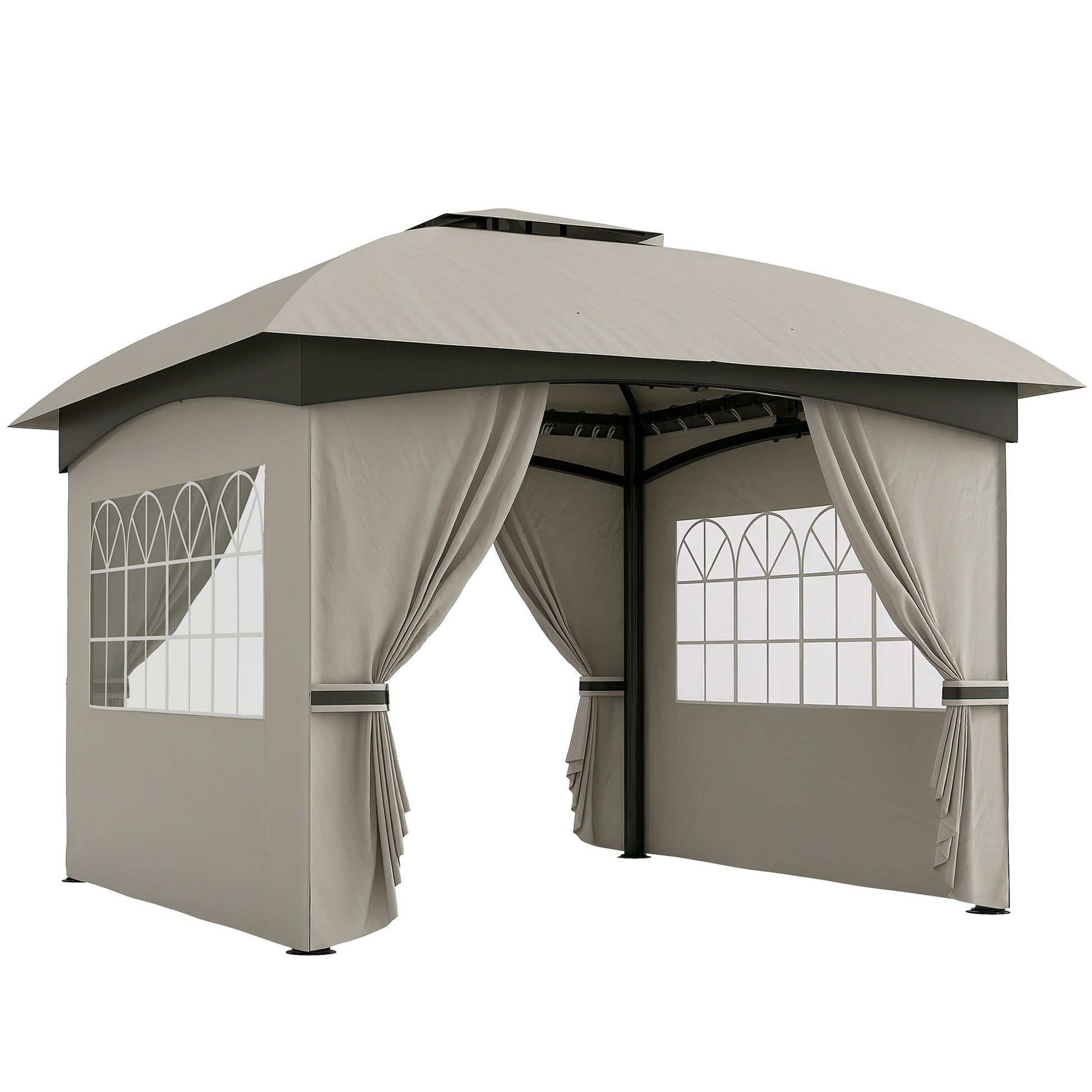 Pavilion 3.4x3.4m Double Roof, 4 Side Panels, Water-Repellent, UV Protection Galvanized Metal Frame, Light Grey