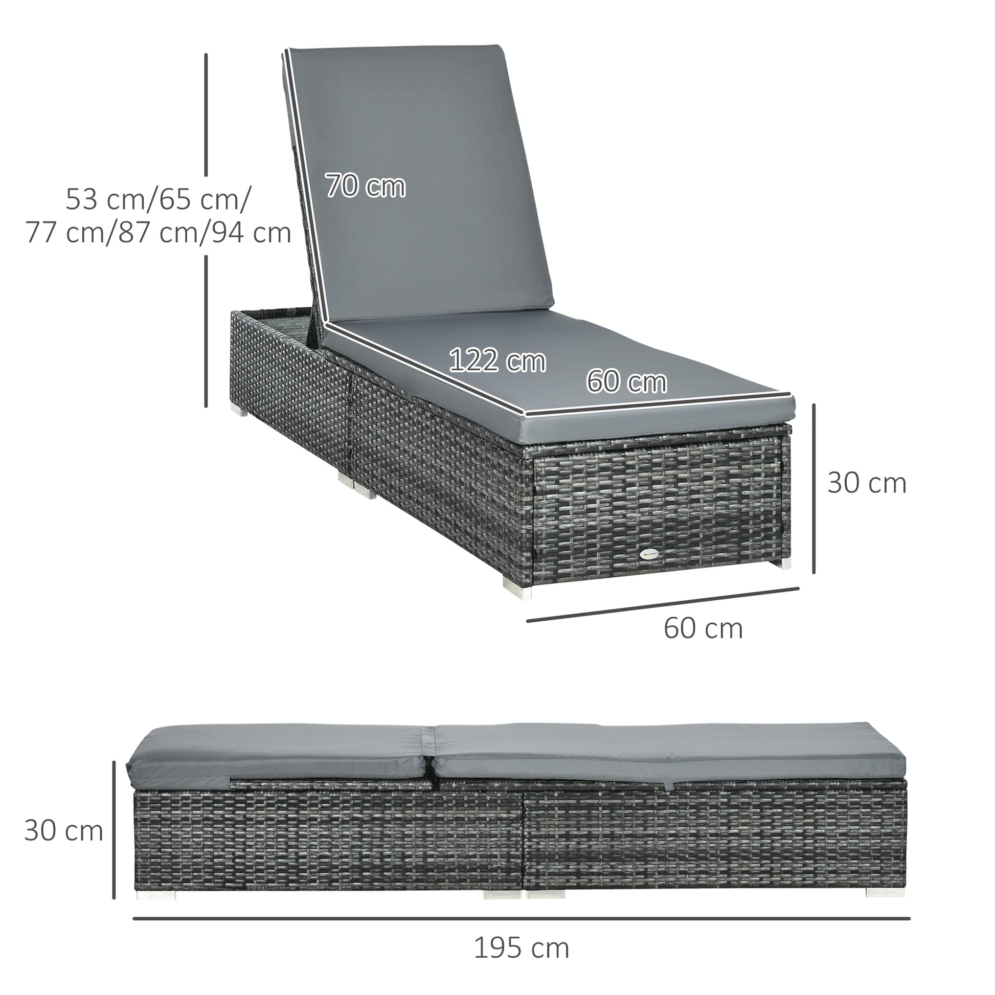 5cm padded seat cushion: Stay comfortable as you relax on the sun lounger. The cushion covers are removable and washable.
