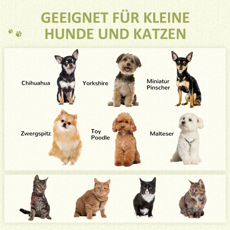 Thanks to the durable fabric and natural pinewood poles, this cozy cave can easily withstand long-term use. Overall dimensions are 60L x 60W x 76H cm. It is suitable for cats up to 5 kg or small dogs up to 4 kg and 30 cm in length.