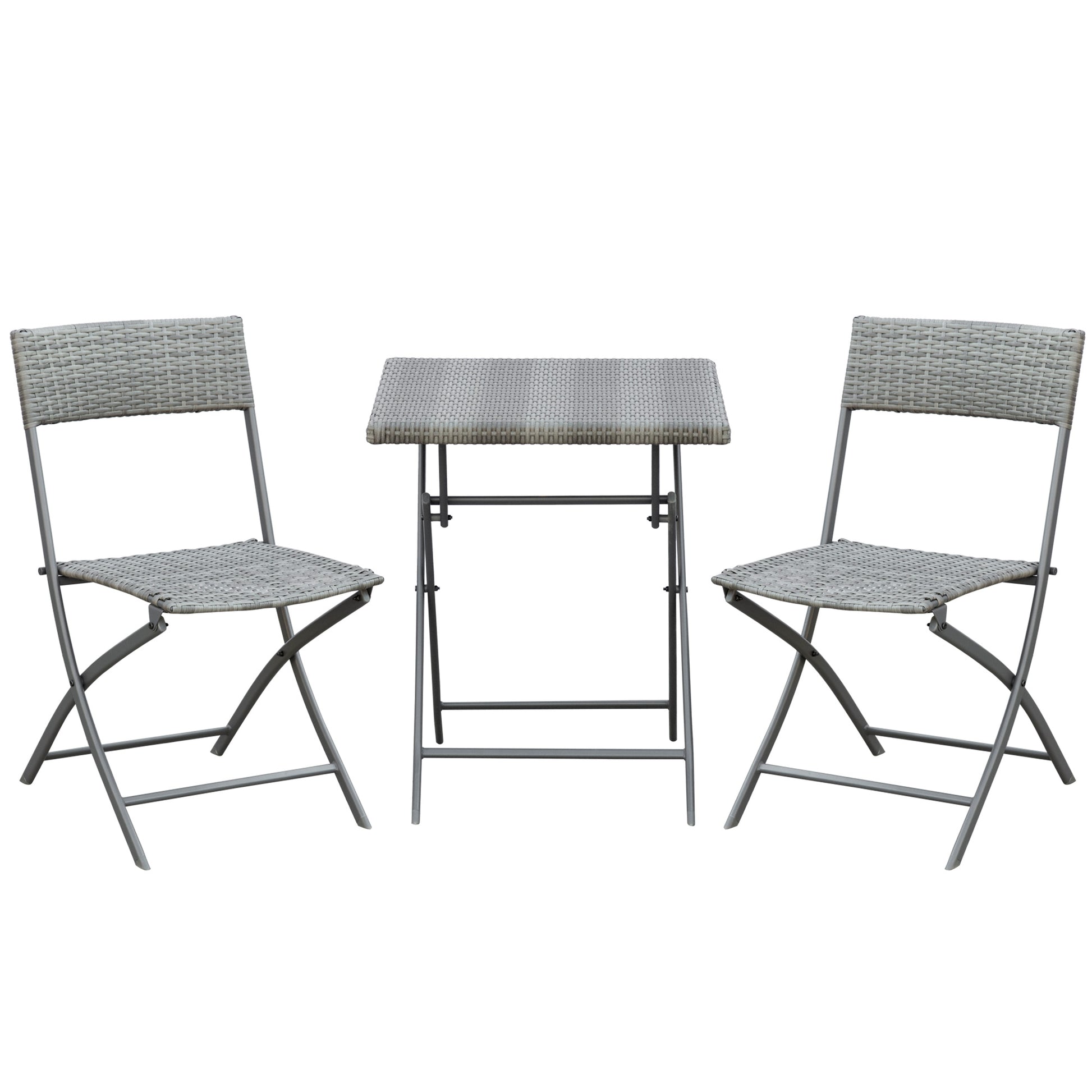 Polyrattan Bistro Set, 2-Person Garden Furniture, Grey