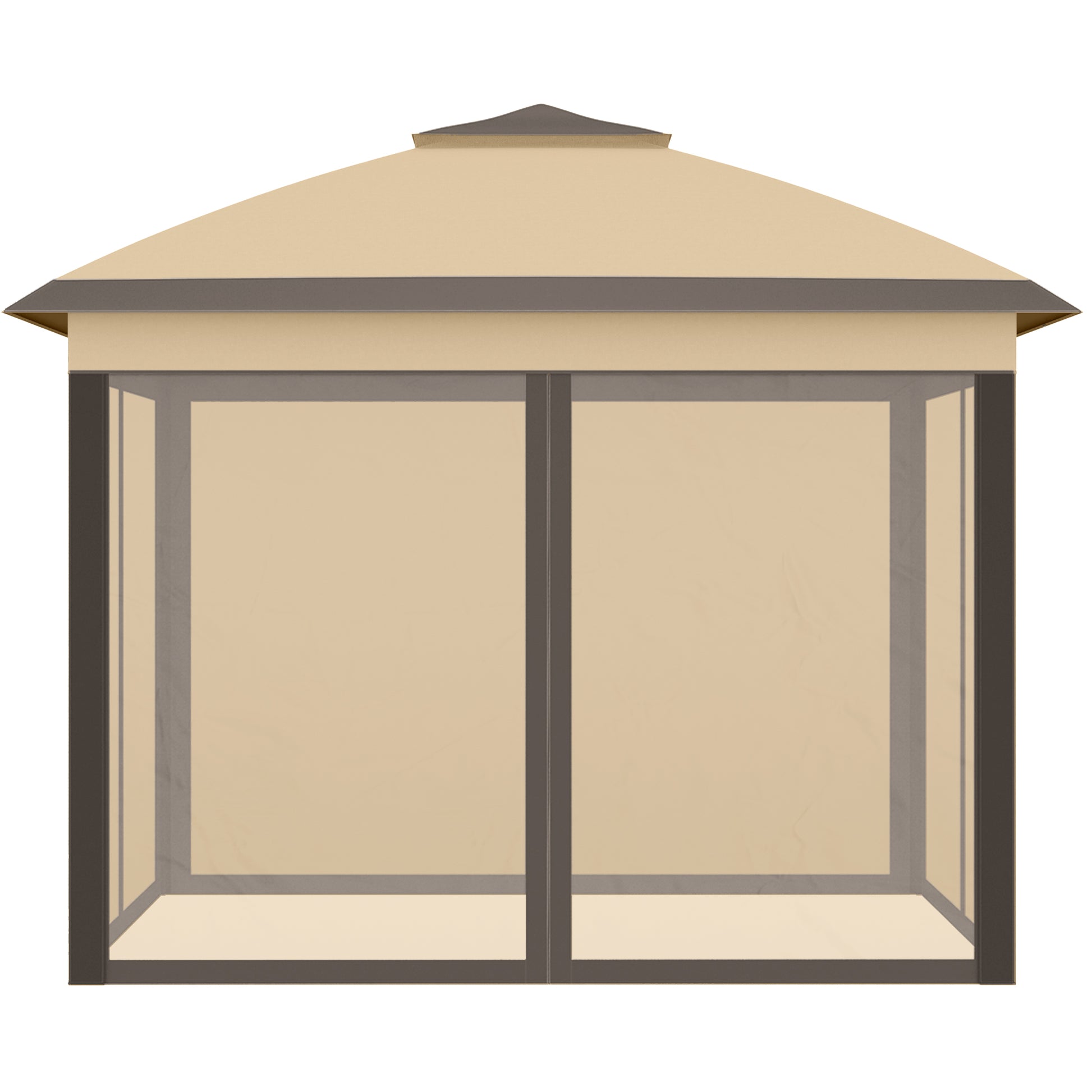 Pop Up Gazebo, 3.3 x 3.3m Double Roof Foldable with Zipped Mesh Sidewalls, Height Adjustable, Beige