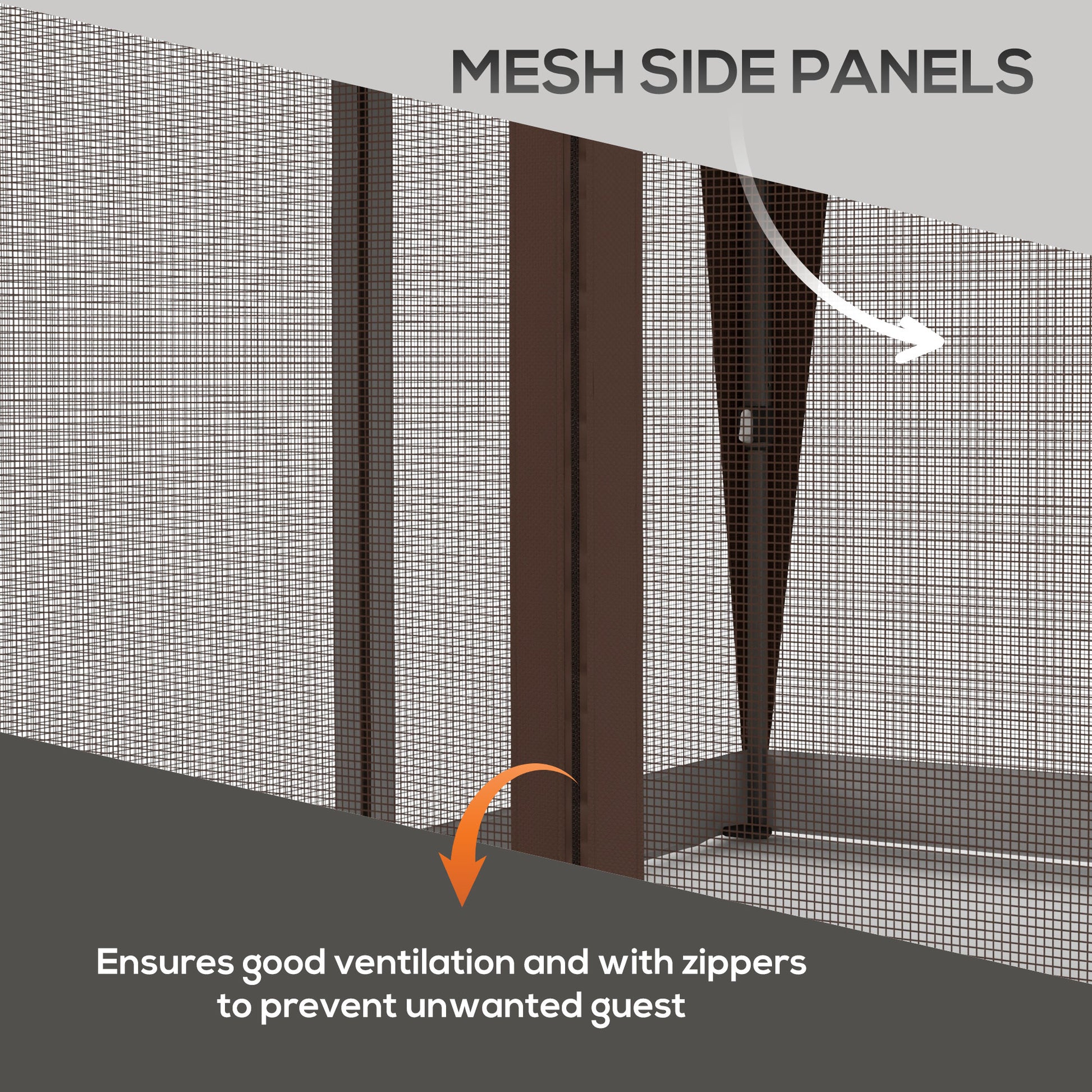 The gazebo is built with a powder-coated steel frame, offering a strong core for stability.