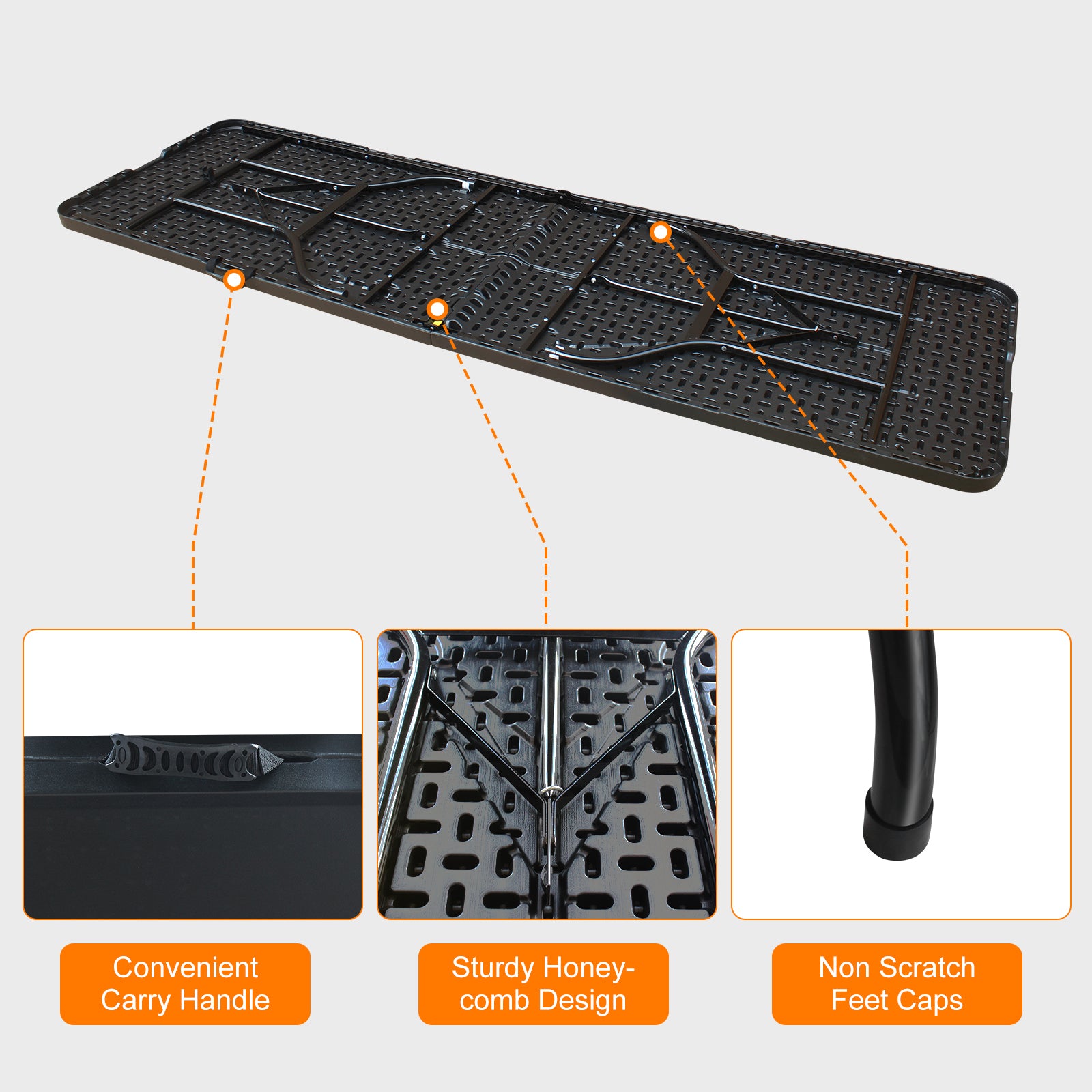 Portable Heavy Duty Folding Table 244cm, Multi-Functional, Black
