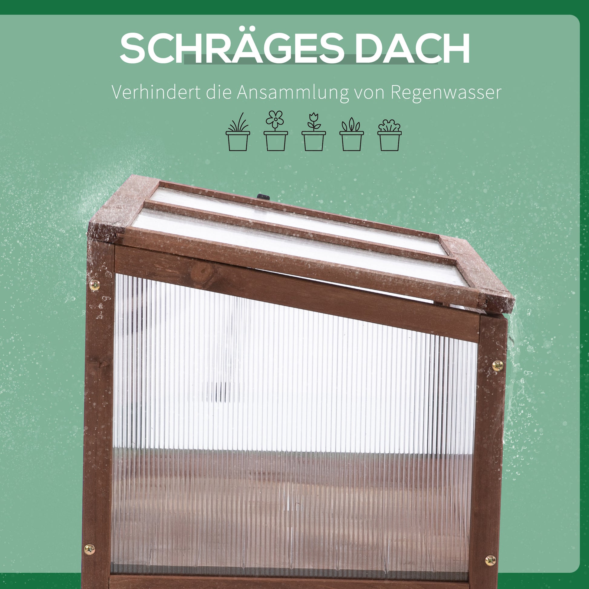 Unique Design: This greenhouse has four wooden feet that allow for easy handling of your plants. The top cover is sloped to prevent rainwater from accumulating, keeping your plants in a safe area. The support section on one side of the greenhouse supports the opening top cover.