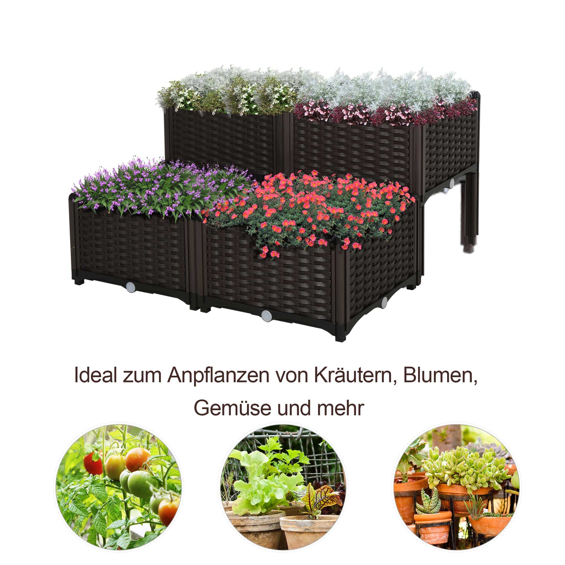 Overall dimensions: L40 x W40 x H44 cm (for 1 raised bed). Load capacity: 30kg each.