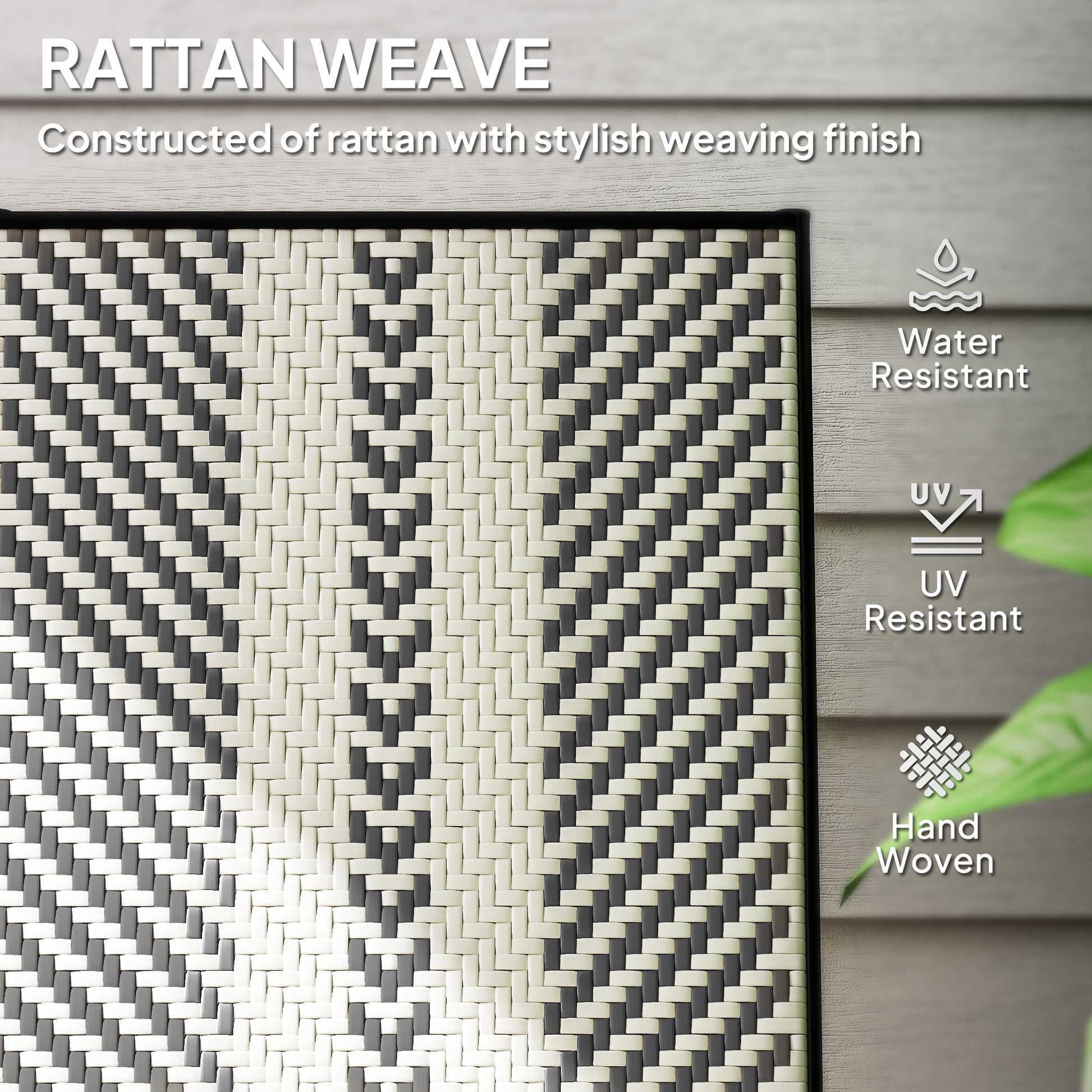 The rattan seats are made of handwoven plastic wicker for a stylish garden look. This material is robust and suitable for outdoor use. The chair features a high back and arms for support.