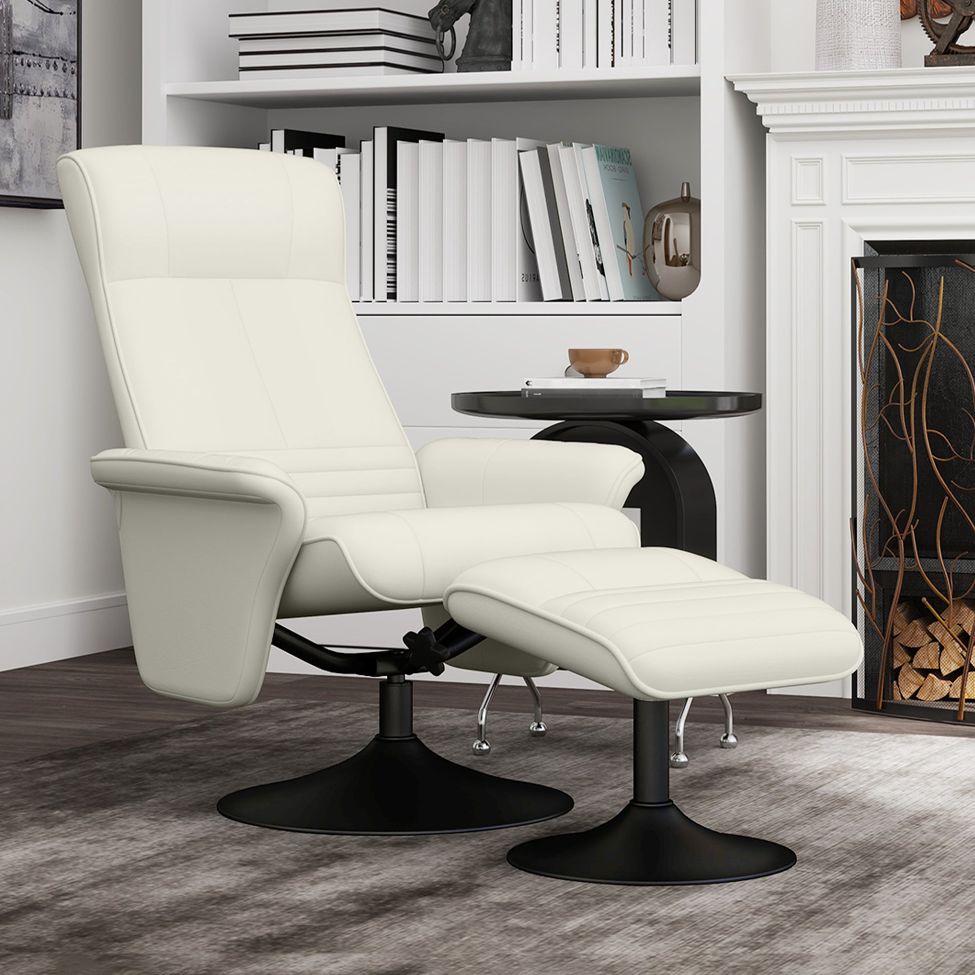 Reclining Armchair with Footstool, Swivel Lounge TV Chair, 150kg Capacity, Microfiber Fabric, Cream White