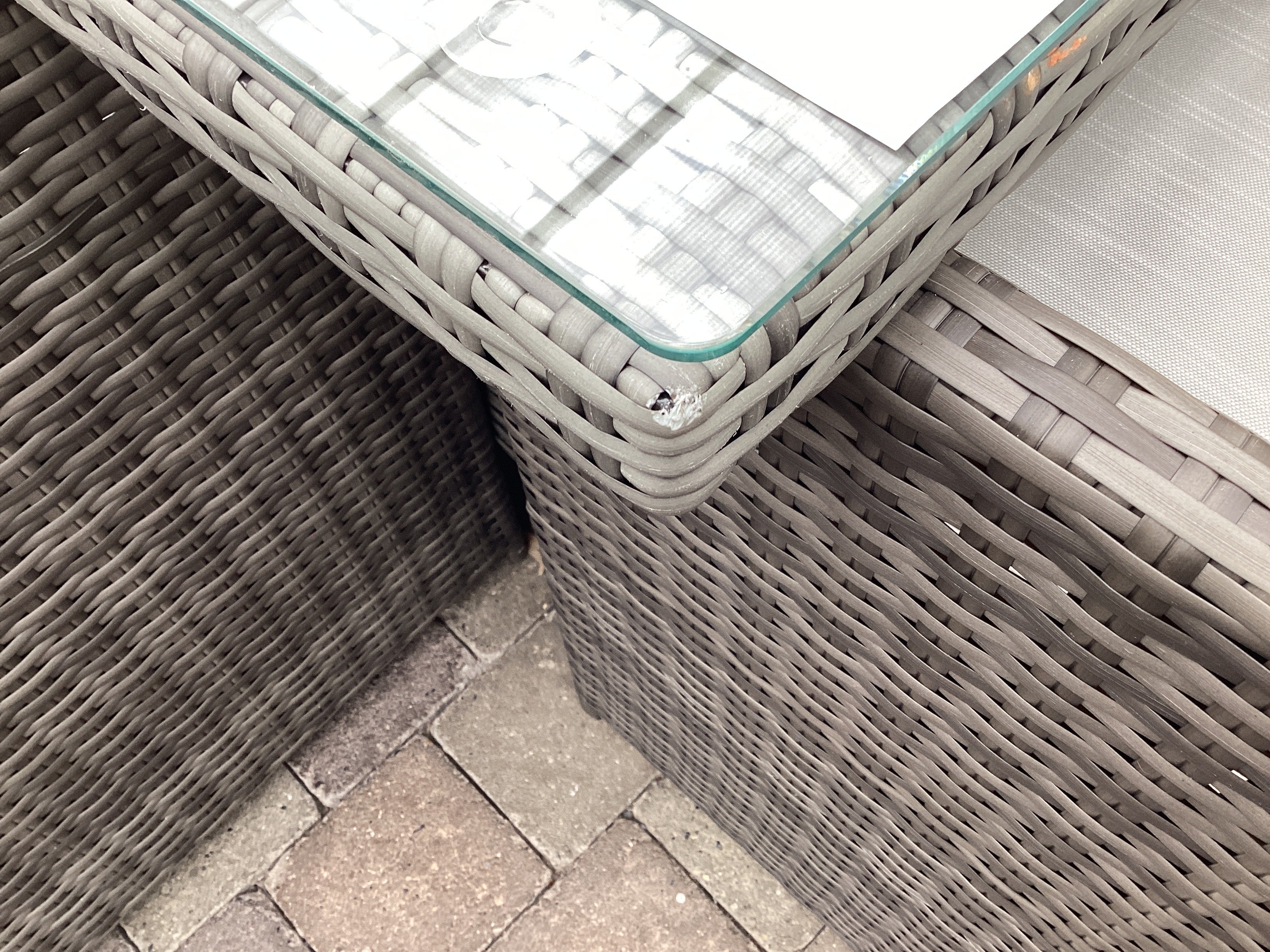 Clearance. Perfect condition, comes with all cushions and footstools. Few scratches on table