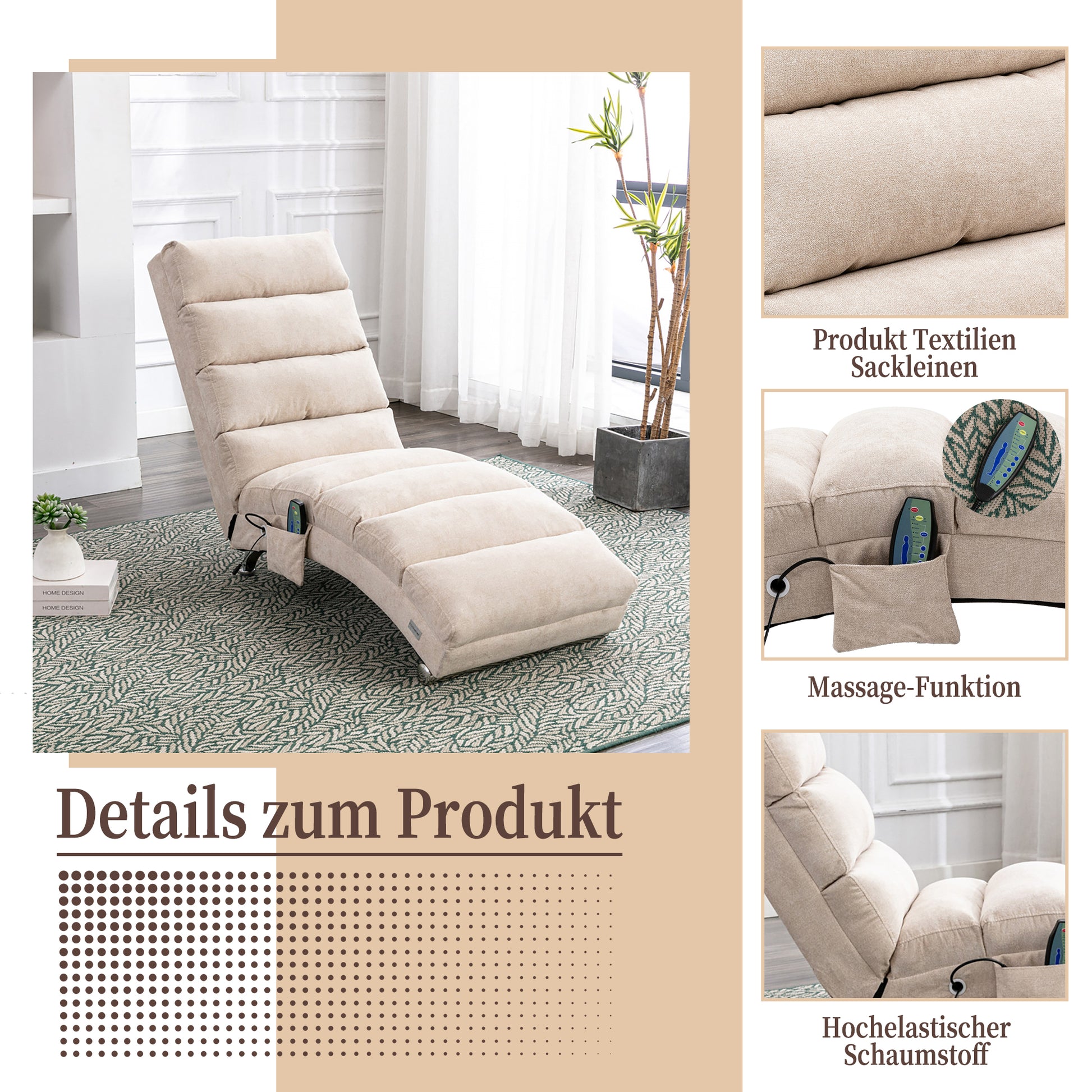 Relaxation Lounger, Fixed Reclining Sofa with Vibration and Side Pockets, Modern Furniture