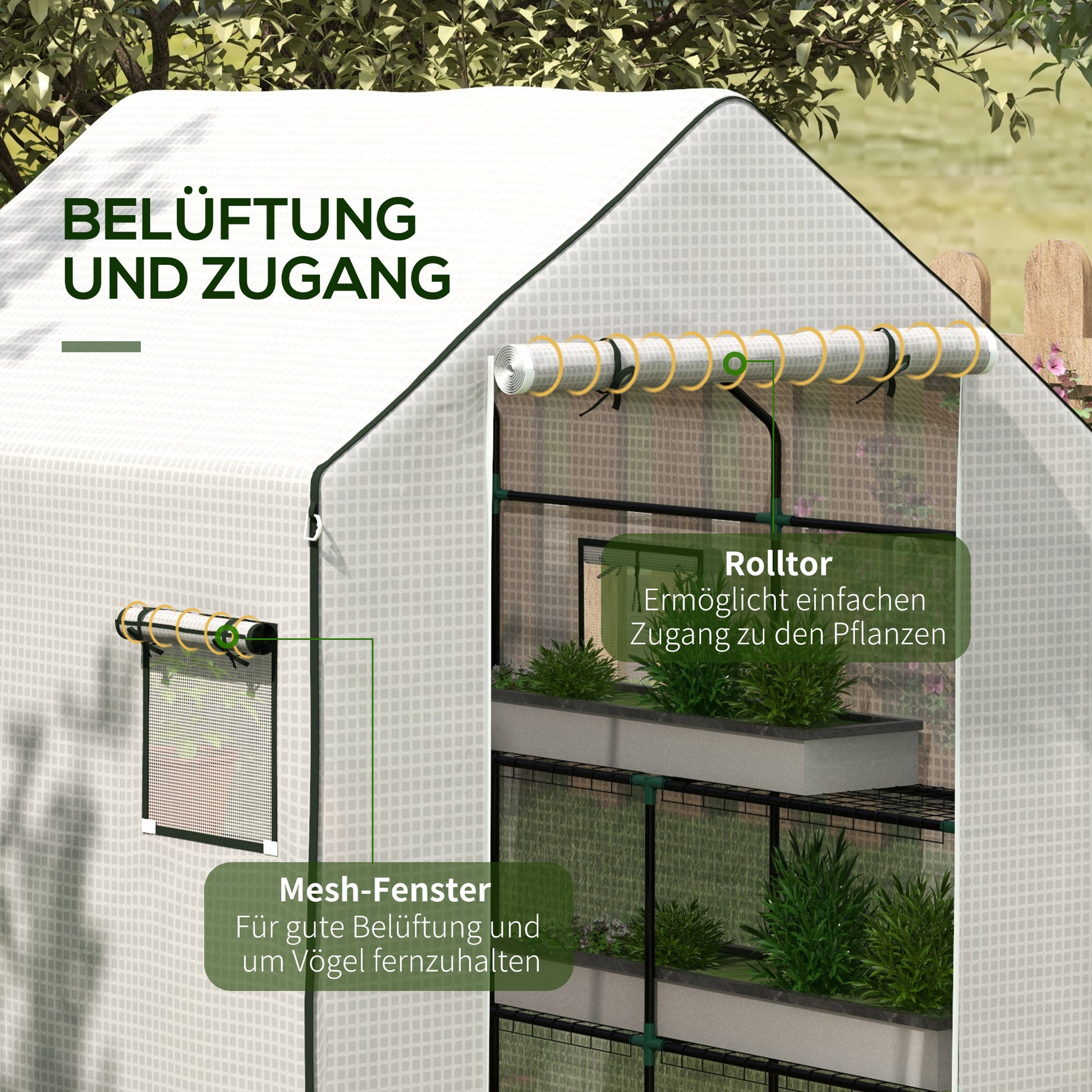 Roll-up door and windows: Enjoy easy access through the large zippered door and keep unwanted insects out with the mesh windows of the greenhouse film – for optimal ventilation.