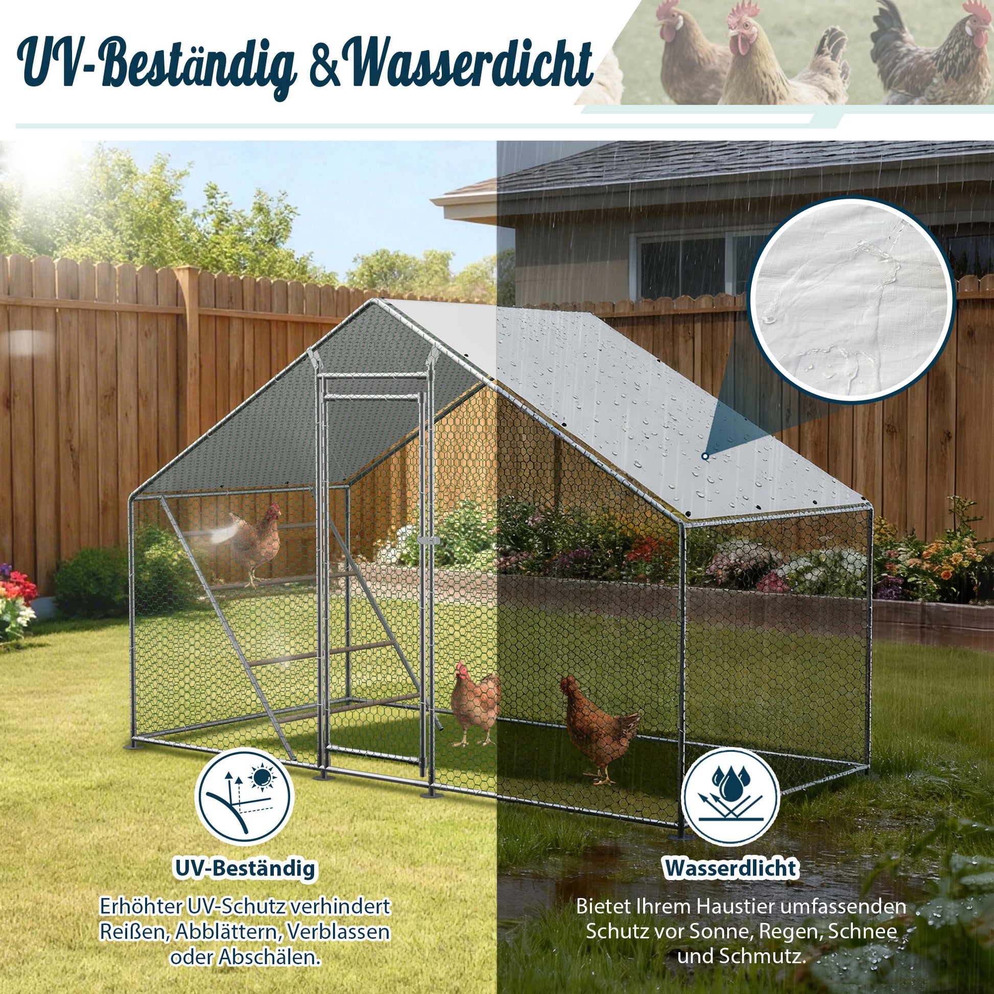 Robust Chicken Coop with Run & Ladder - Secure, Weatherproof, Easy-Clean Habitat - Silver Galvanized Steel