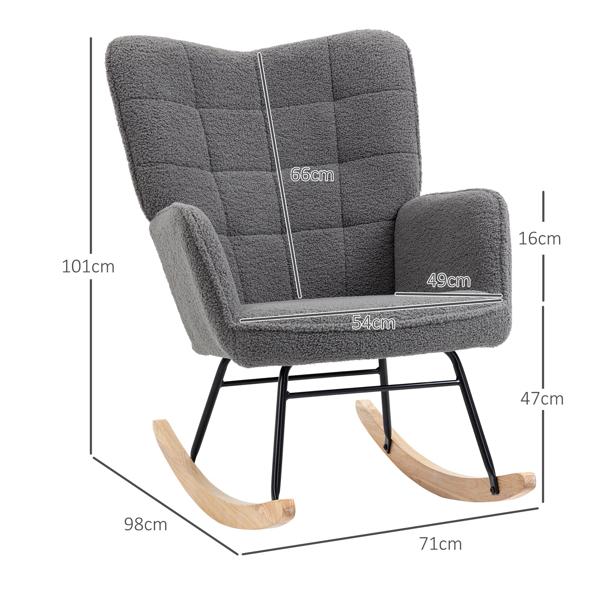 Rocking Armchair with Berber Fleece Look, Wooden Runners, 120kg Capacity, Dark Grey