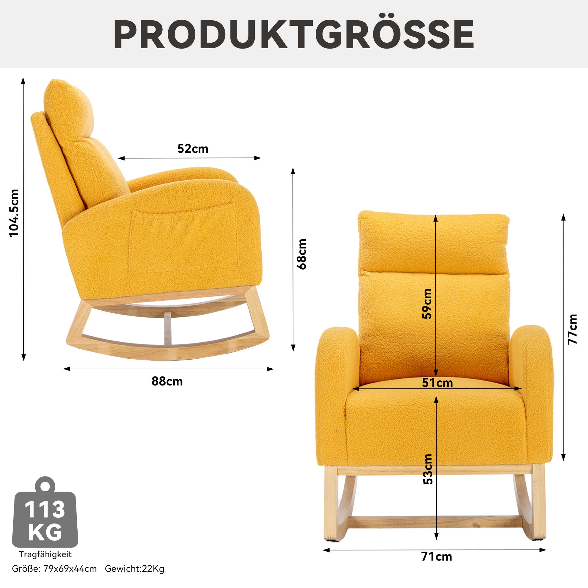 5. Ultra-simple assembly in 15 minutes\! Worried about complicated assembly? Not at all\! In just a few simple steps, your chair is ready in 15 minutes. Perfect for the living room, bedroom, or office – it adapts to many environments and brings comfort anywhere.Product Composition: Soft plush material + foam padding + wooden frame + wooden rocker legs + padding + floor protection and insulation layer