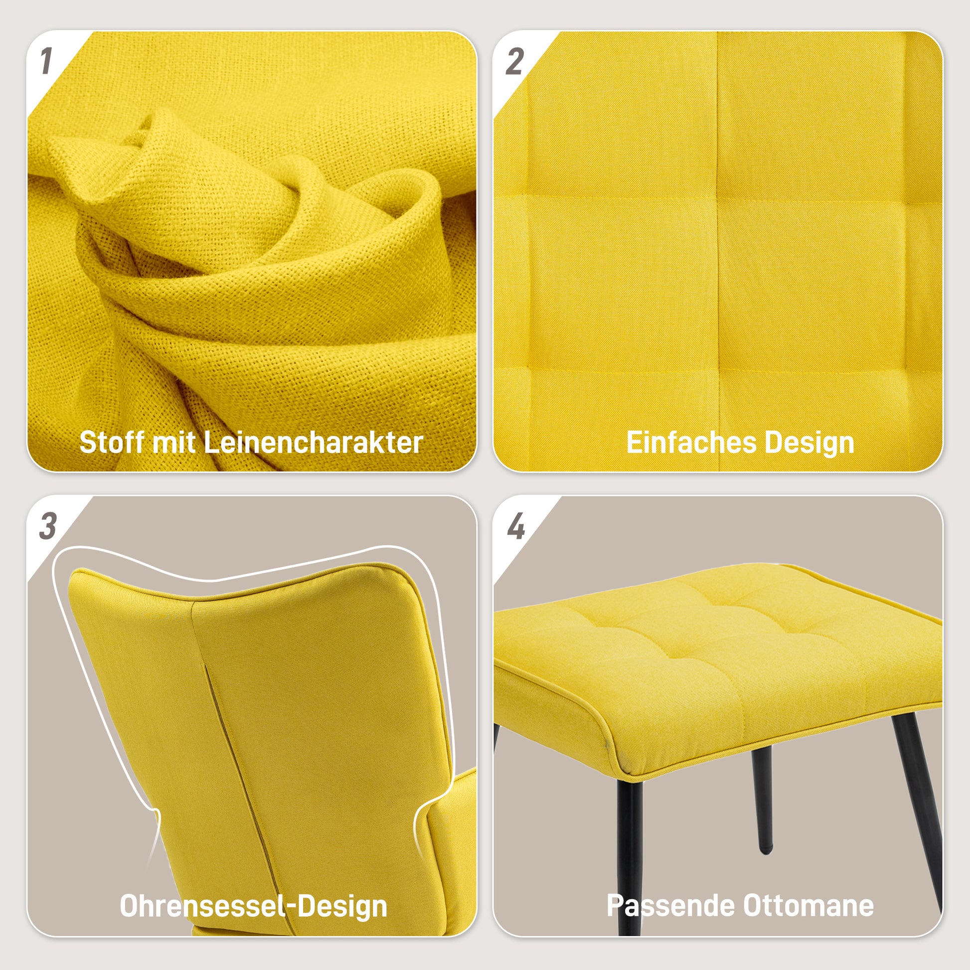 Rocking Chair with Footstool, Relaxing Armchair 130 kg Capacity, Linen Look Beige