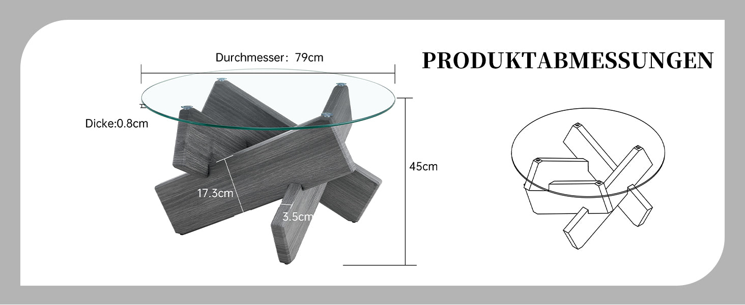 Unique Material Combination: Made of MDF and glass, the MDF legs feature a gray, natural, and beautifully textured finish. Combined with a 0.8 cm thick glass tabletop, this creates a striking sense of transparency.