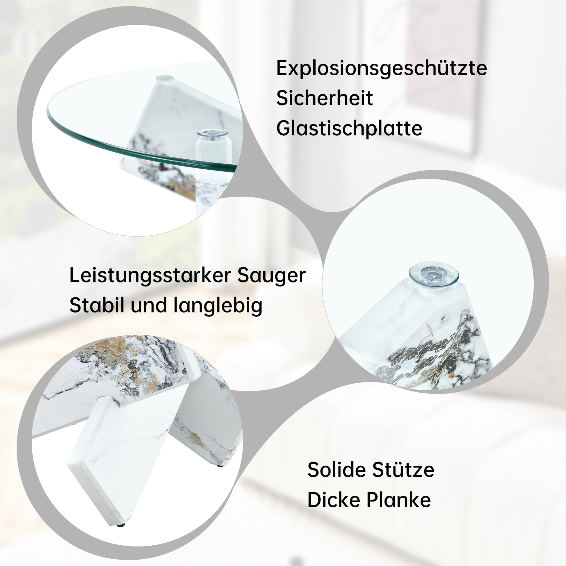 Unique Material Combination: Made of MDF (medium-density fiberboard) and glass, the MDF legs feature white, marble-like textured stickers with a natural finish. This not only looks clean and transparent but also has a light, luxurious feel with an excellent texture. Combined with a 0.8 cm thick glass tabletop, it exudes a strong sense of transparency. The lightness of the glass complements the high-end feel of the white marble pattern.
