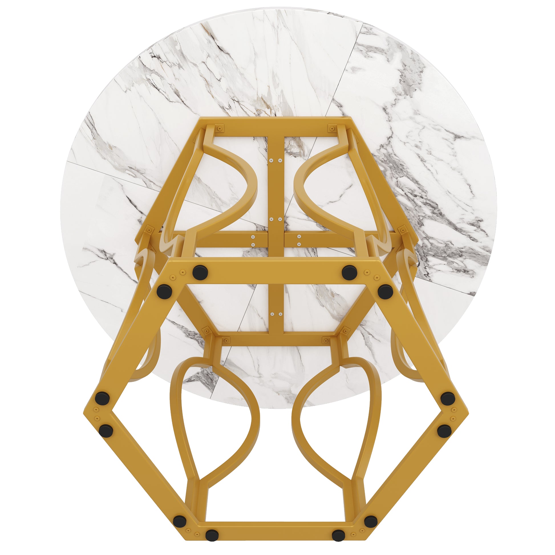 Round Dining Table (100x100x76cm), 4-Seater, Metal Legs, MDF Marbled Tabletop, Golden Legs