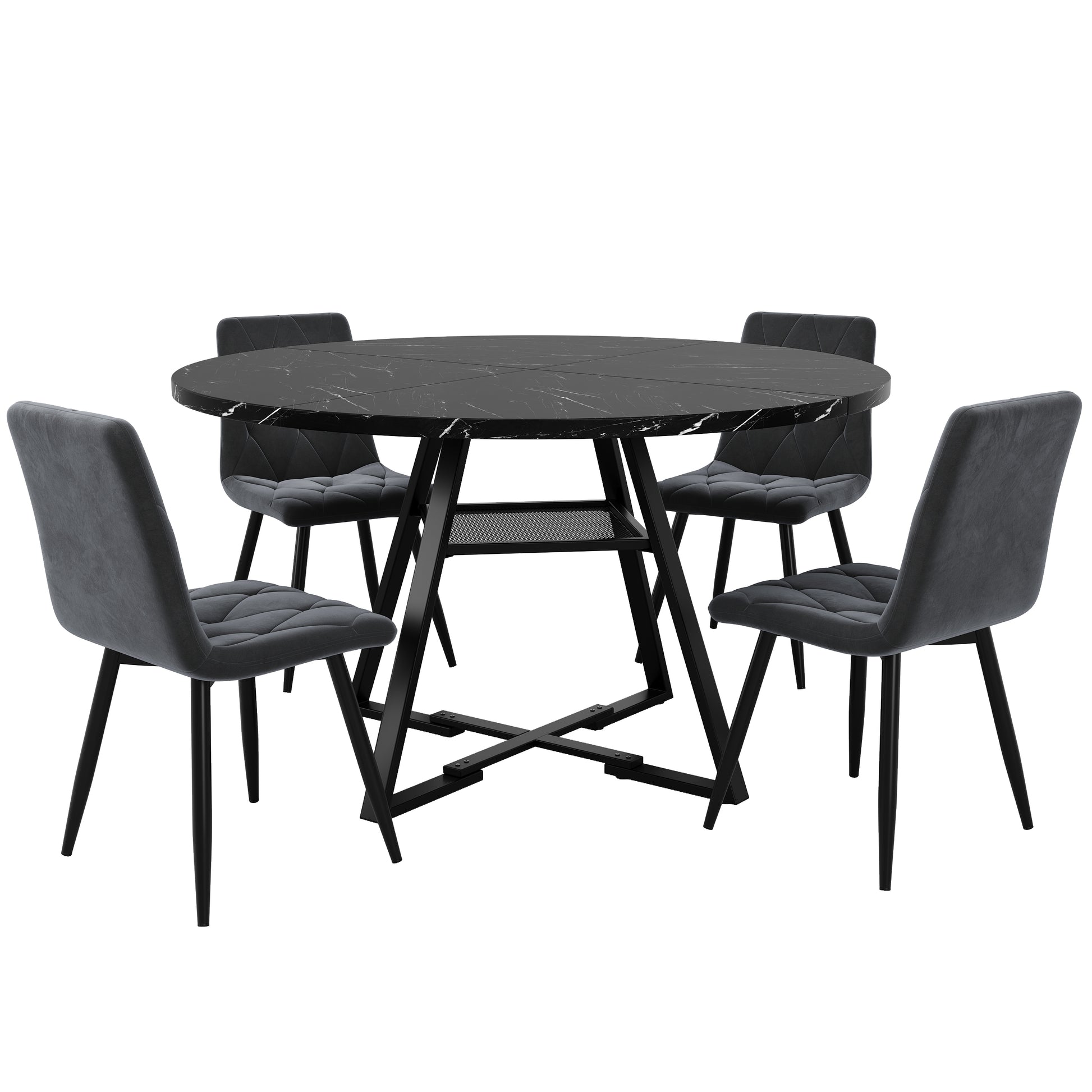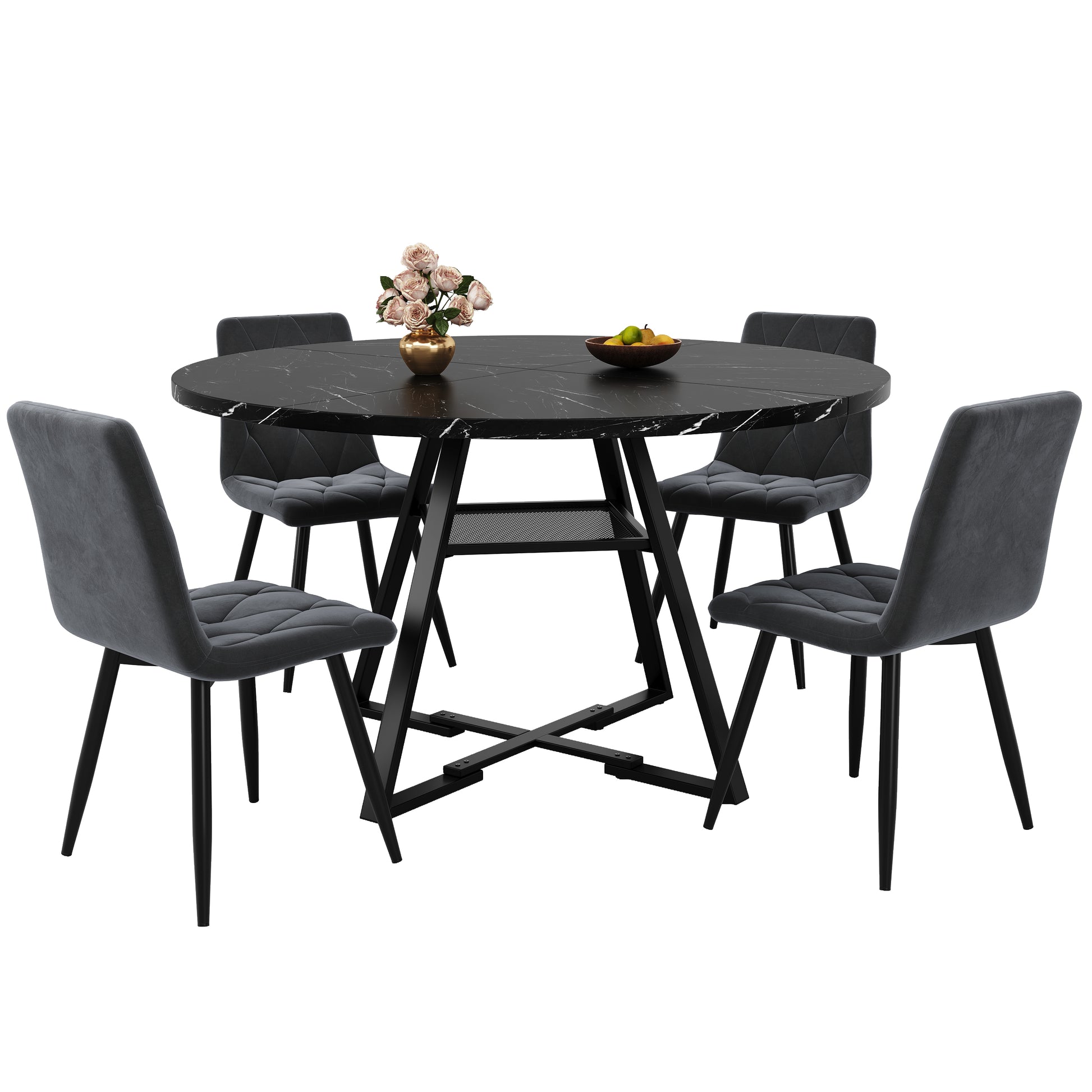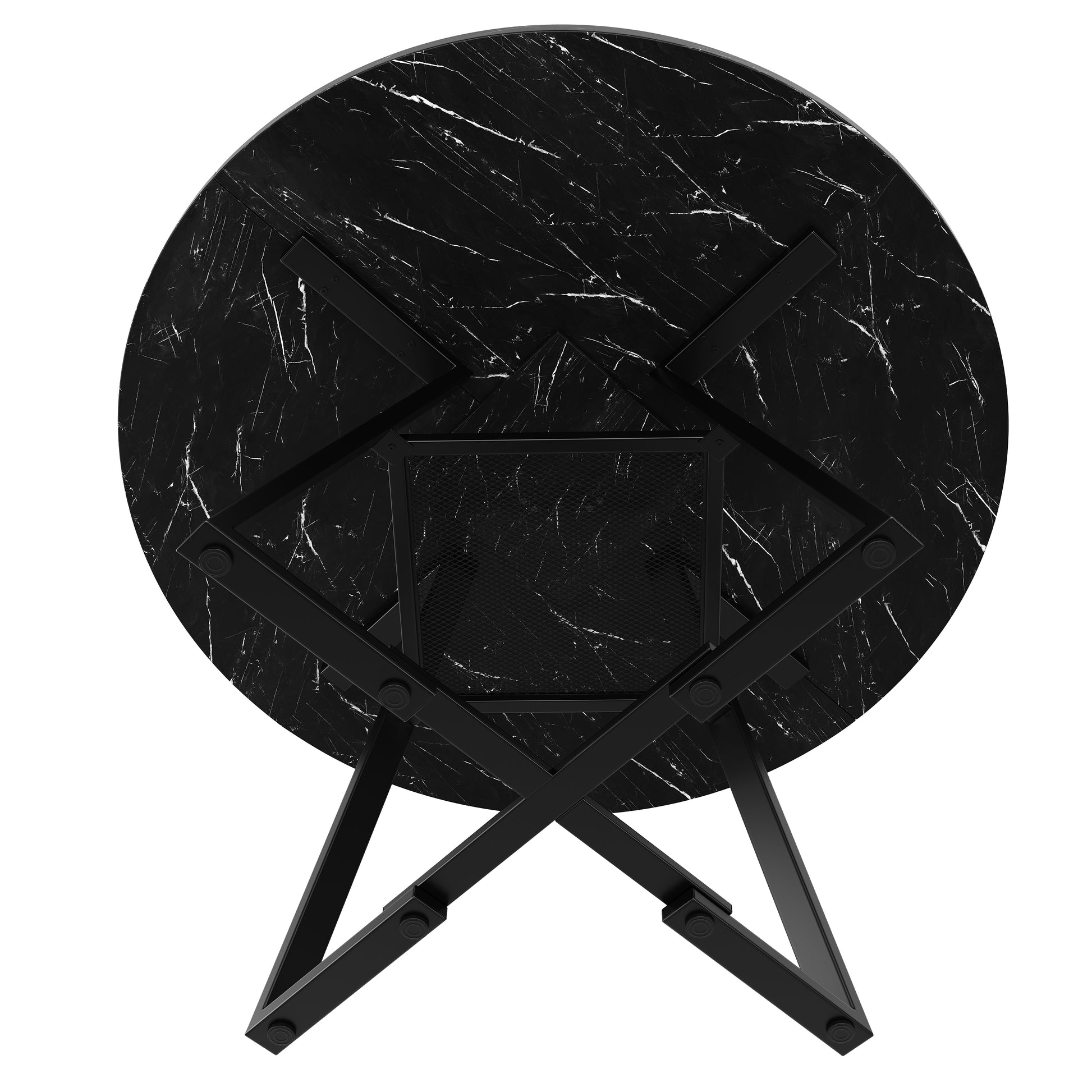 Round Dining Table, Kitchen Breakfast Table Metal Legs, Marble Look Black/White