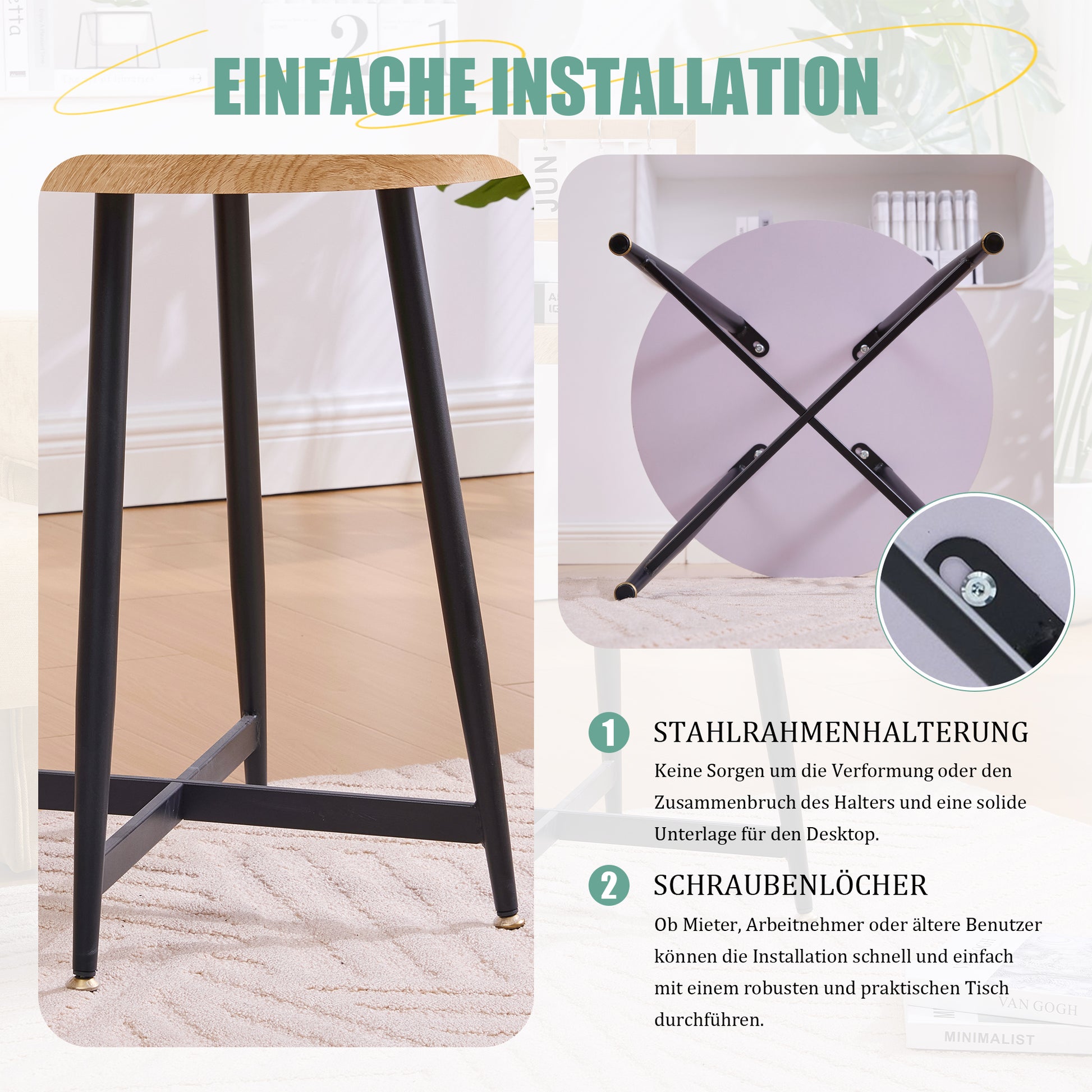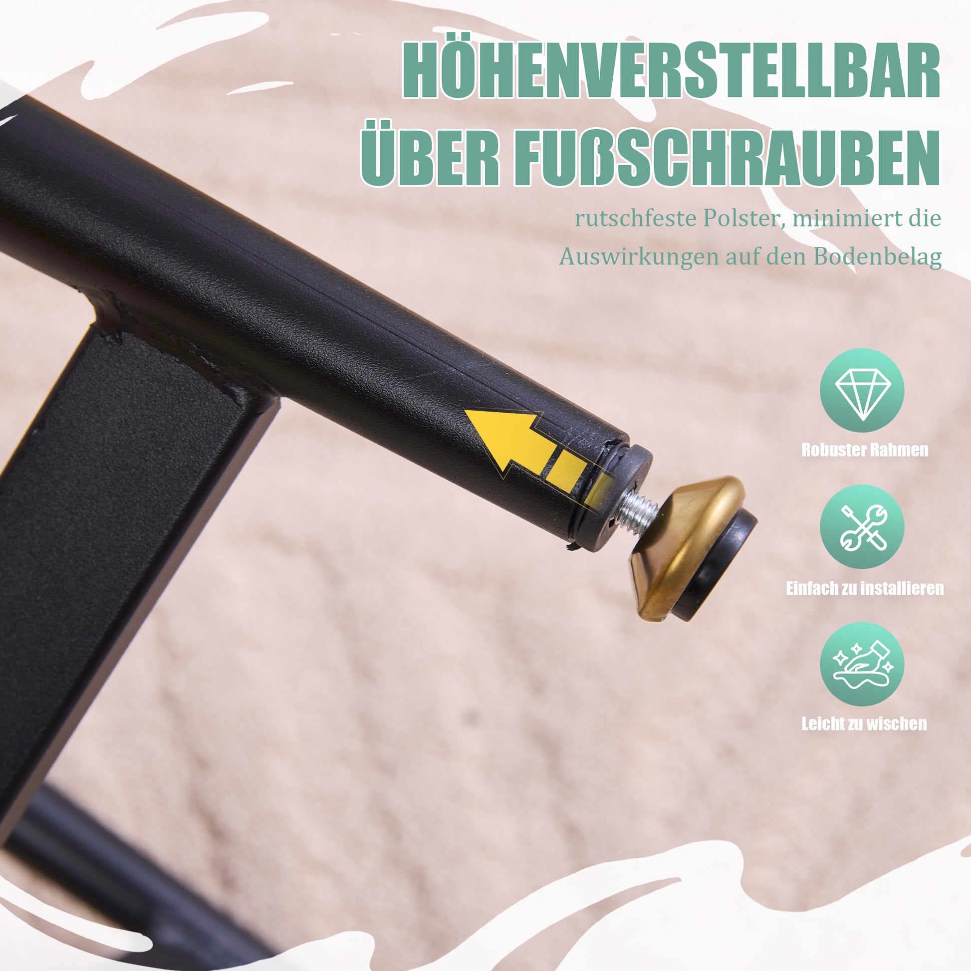 Black metal legs with a cross-braced design offer excellent load-bearing capacity, minimal wobble, and long-lasting durability.