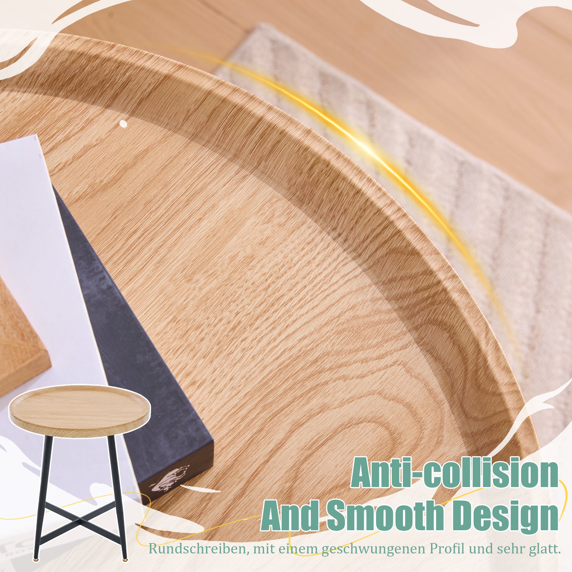 Round Side Table Modern Minimalist Compact - Wood/Metal Frame