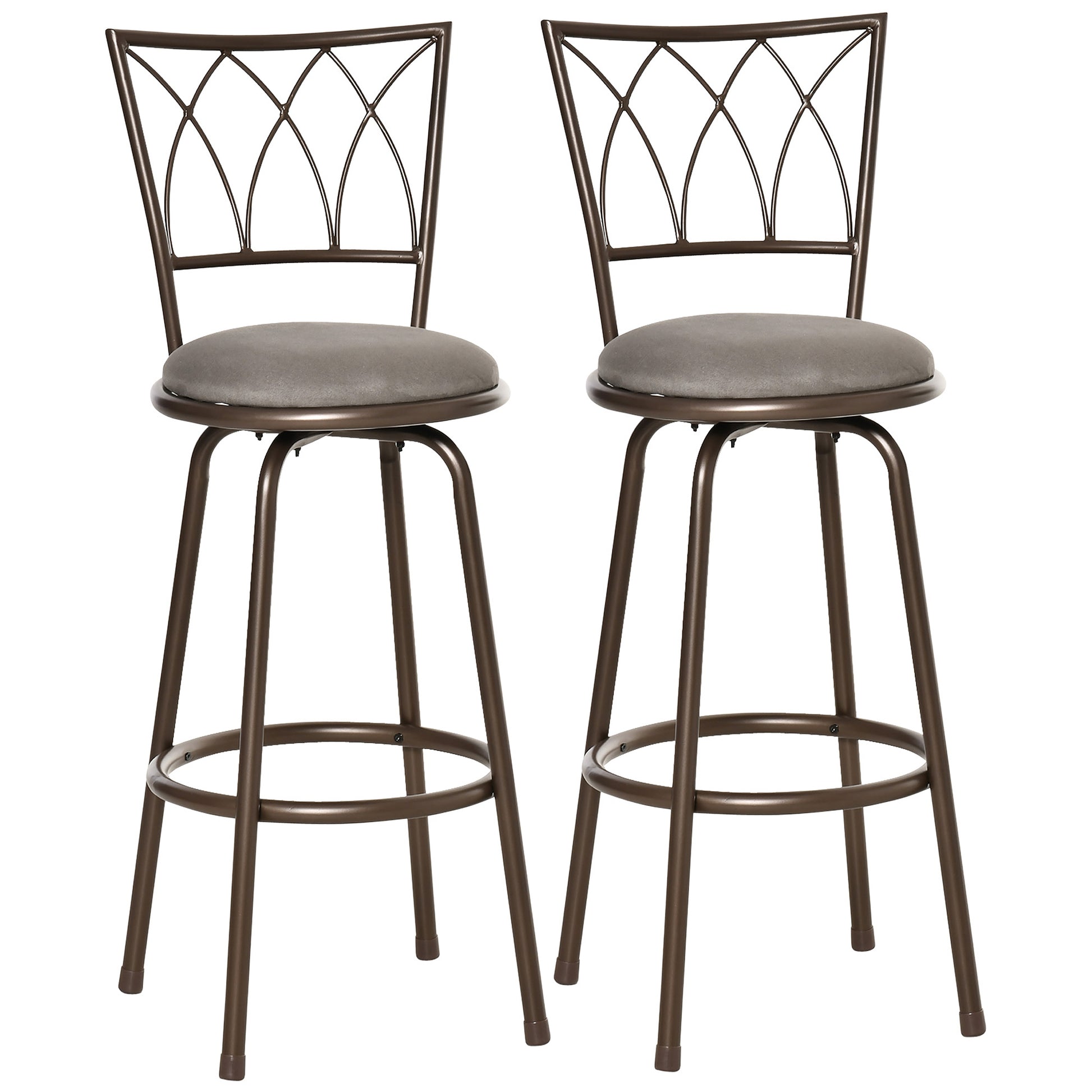 Set of 2 Bar Chairs Swivel Upholstered Metal Barstools, Bronze